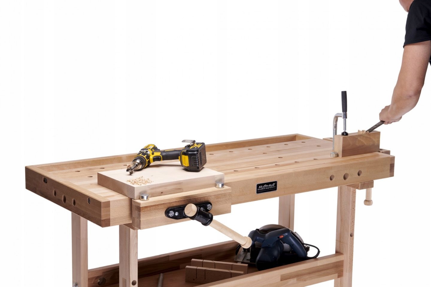 Модель DIAMOND представляет собой компромисс между серией для любителей DIY и профессионалов. Столешница изготовлена из массива бука, что обеспечивает отличную устойчивость и надежную обработку материала. Благодаря двум размерам стол DIAMOND предназначен как для больших предприятий, так и для предприятий с ограниченным пространством. Эта модель имеет открытую полку, идеально подходящую для хранения материалов, а желоб, расположенный в задней части столешницы, обеспечивает место для всех необходимых во время работы инструментов. Конструкция стола позволяет менять положение зажимов для удобства пользователей как правшей, так и левшей. Отверстия для стоек верстака в столешнице позволяют крепить различные заготовки разного размера, а отверстия в ножках позволяют осуществлять вертикальную установку заготовки. К столу прилагается понятная и разборчивая инструкция, позволяющая быстро и без проблем собрать стол.