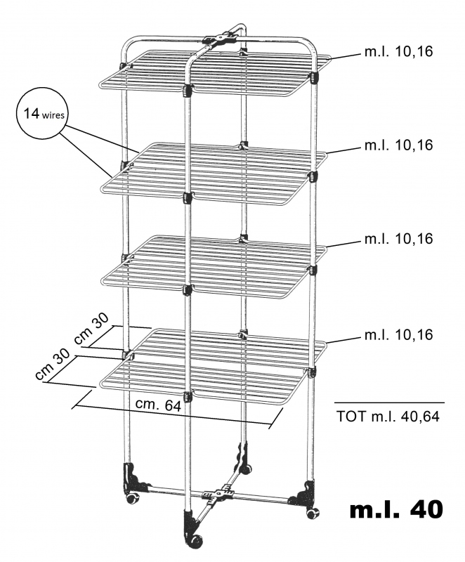 - 4 поворотных колеса позволяют легко перемещать сушилку в разложенном виде.