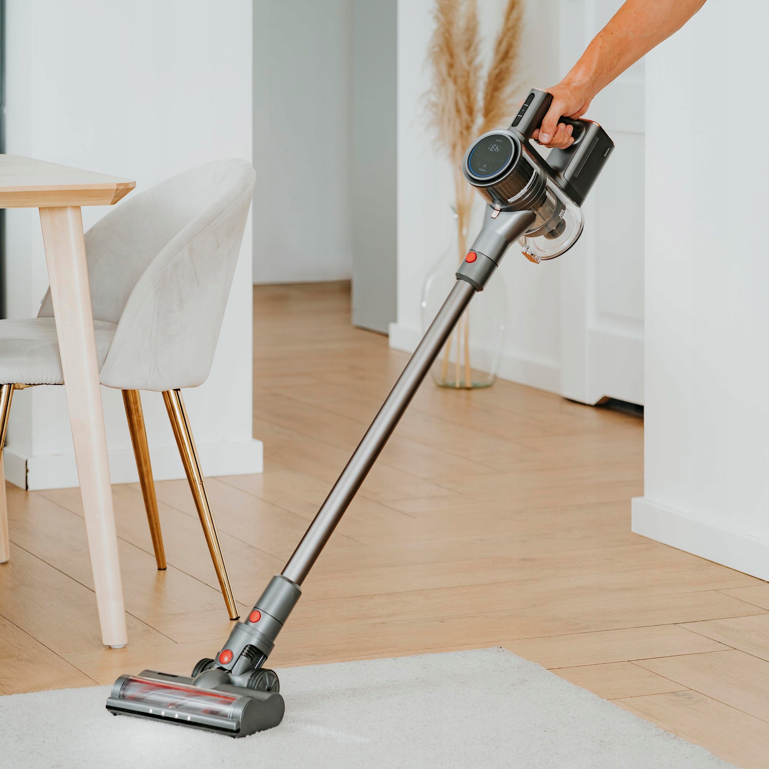 Вертикальный вакуумный очиститель Pro светодиод является идеальным решением для ежедневной очистки. Благодаря мощному бесщеточному двигателю и трем уровням всасывания , он легко справляется как с тонкой пылью, так и с большей грязью. Автоматический режим с датчиком пыли отрегулирует саму силу всасывания, что облегчает очистку.