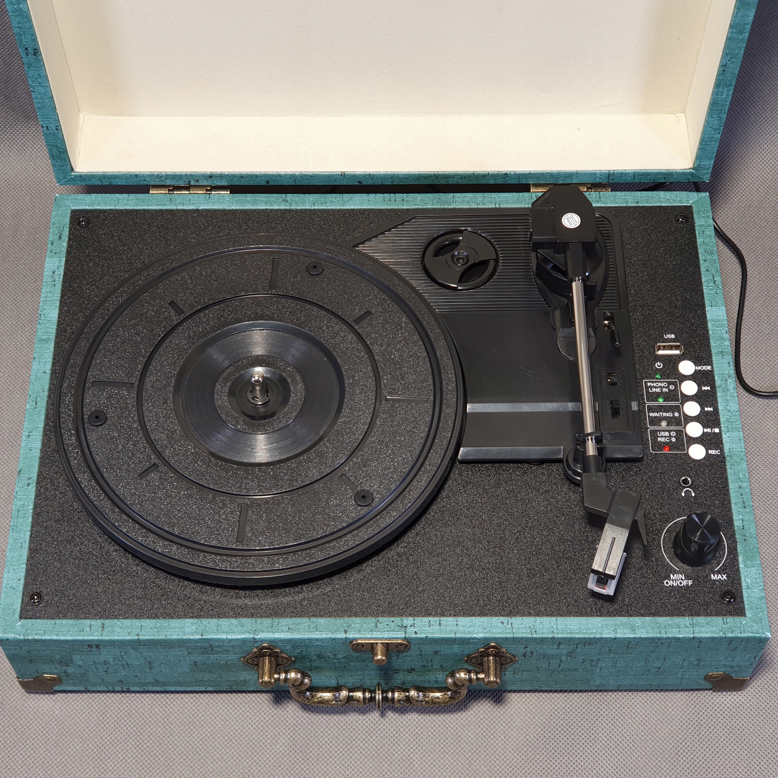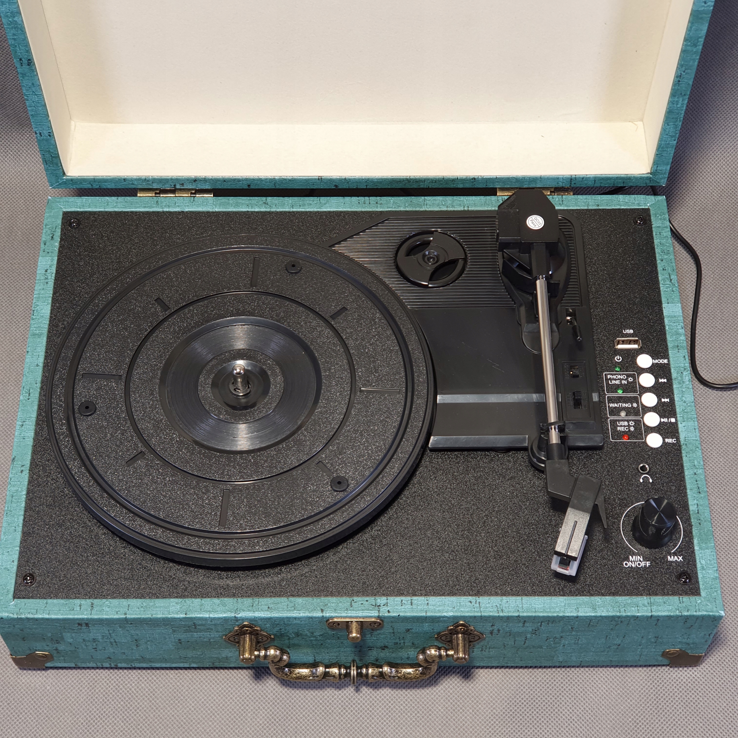 Проигрыватель с входом для динамика AUX и выходом RCA. В комплект входит входной кабель AUX. Используйте входной кабель Aux для воспроизведения музыки с проигрывателей компакт-дисков, смартфонов или других проводных источников звука. Для лучшего и более громкого звука подключите внешние динамики с помощью прилагаемого выходного кабеля RCA. Кроме того, 3,5-мм разъем для наушников позволяет наслаждаться музыкой.