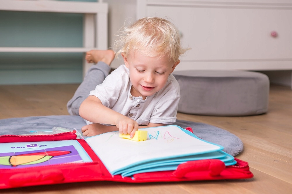 Эта книга предоставит вашему ребенку пространство для рисования, шаг за шагом проведя его через процесс создания рисунка. На одной стороне книги расположены пазлы на липучке, создающие картинку, на другой стороне пустое место для рисования. Чтобы облегчить детям задачу, вверху каждой пустой страницы есть иллюстрированная инструкция о том, как создать рисунок, видимый на головоломке рядом с ней. В комплект книги входят специальные мелки. и волшебные губки, которые стирают, когда намокнут, ранее нарисованную работу, чтобы веселье могло начаться с самого начала. Каждая картинка-головоломка описана названием видимого на ней предмета или транспортного средства. Все дополняется удобными ручками и практичной застежкой-молнией, на которой можно застегнуть книгу.