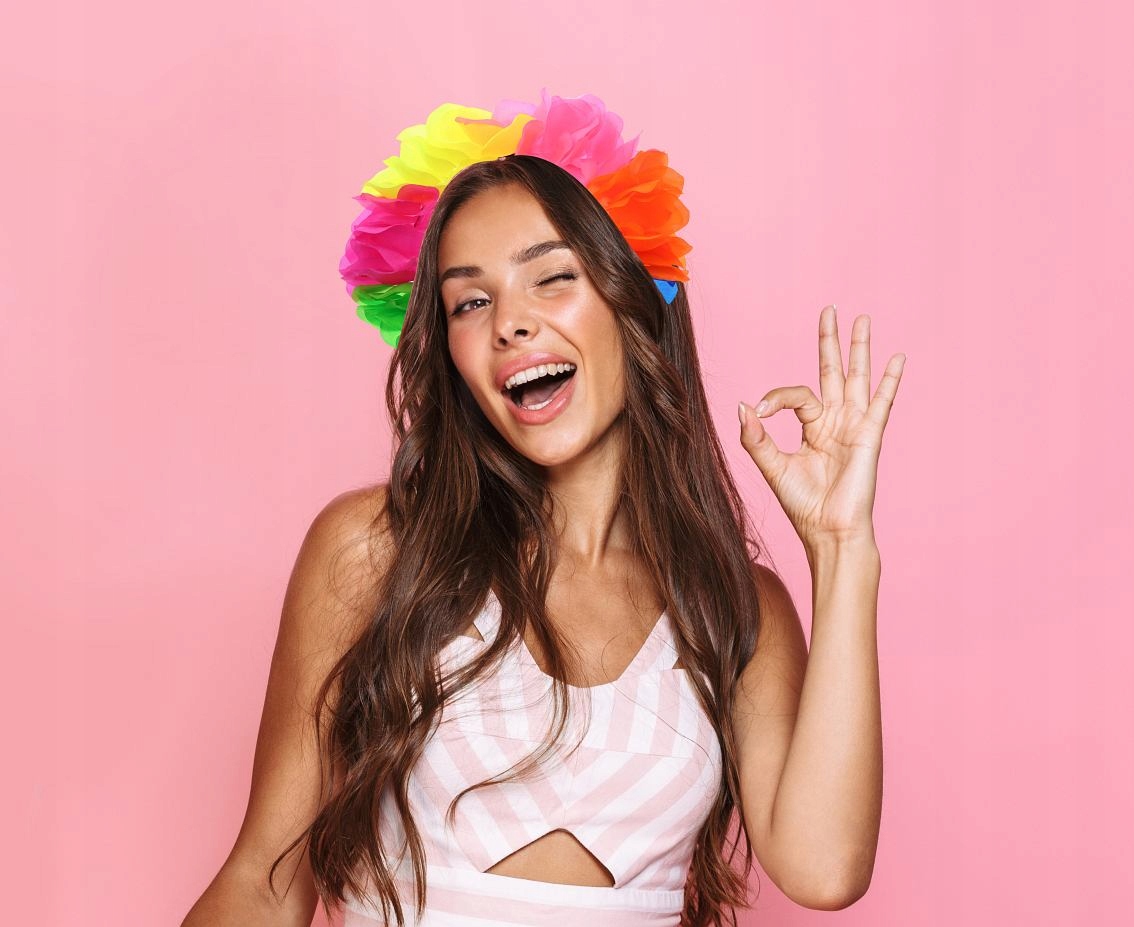 Этот красочный ободок, украшенный радужными лепестками, идеально подойдет для различных летних вечеринок, фестивалей и мероприятий на свежем воздухе.
