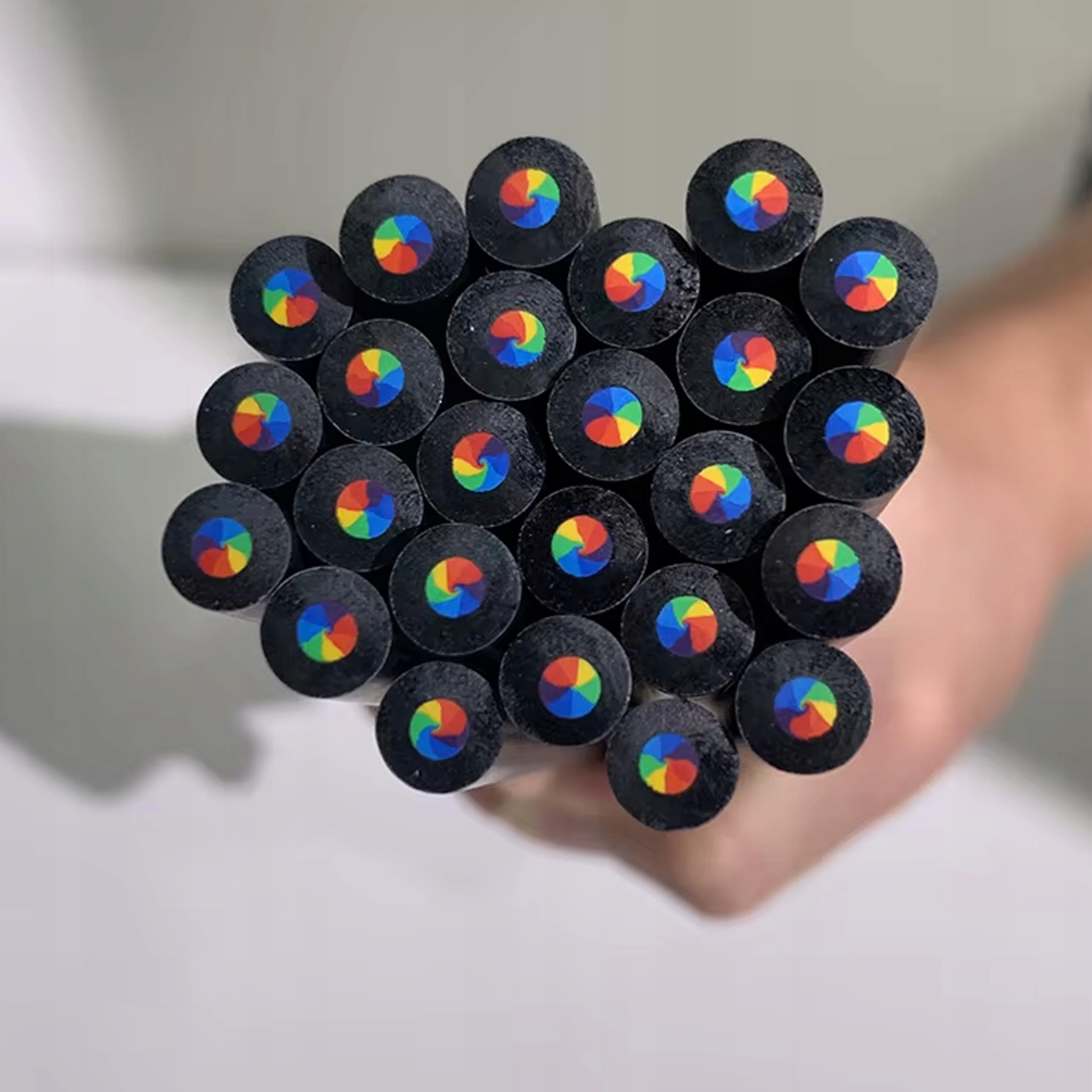 - Цвета в одном карандашом: Красный, оранжевый, желтый, зеленый, синий, темно -синий, фиолетовый
