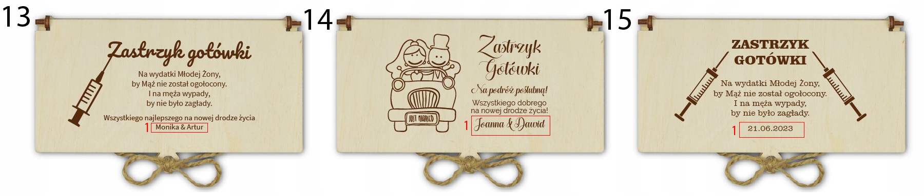 Мы часто задаемся вопросом, как элегантно сделать подарок в виде денег. Деревянная коробка с веселой гравировкой - идеальная альтернатива традиционному «конверту». Подарок, представленный таким образом, наверняка запомнится невестой и невестой.