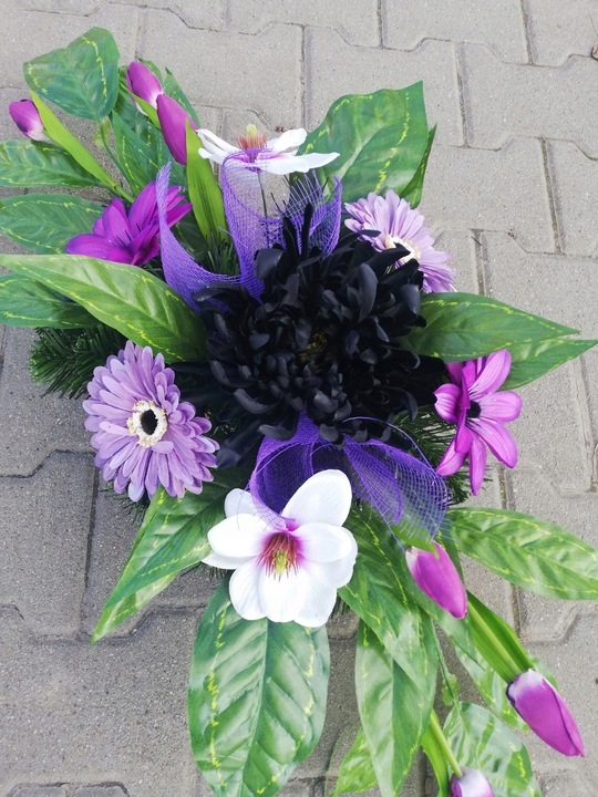 Цветочная композиция на могилу была тщательно изготовлена, с соблюдением модных цветов, из очень качественных материалов и искусственных цветов.
