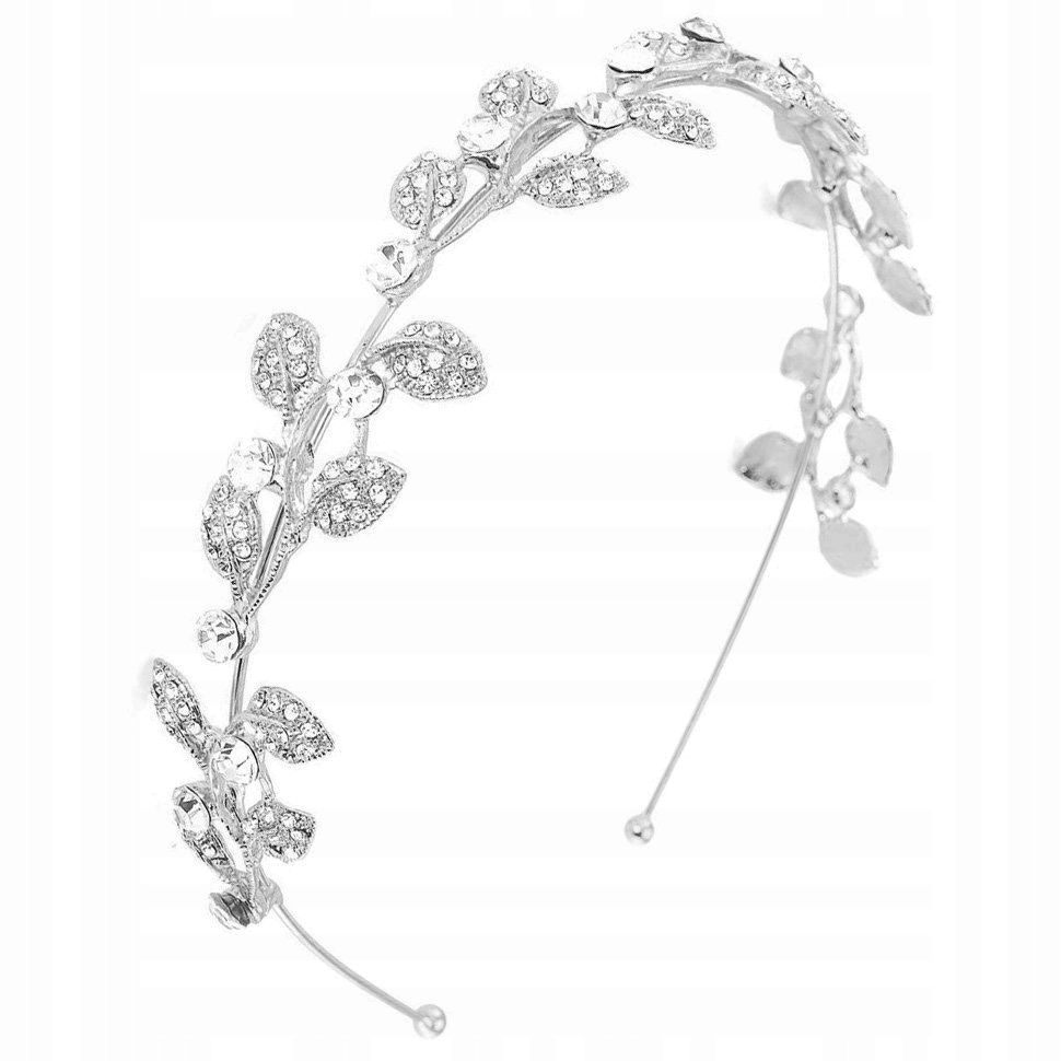 Свадебная ОБОДА ДЛЯ ВОЛОС ЛИСТЬЯ серебряная ЦИРКОНИЯ - 37150 Miss Glow