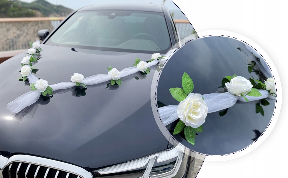 СВАДЕБНЫЙ ДЕКОРАТИВНЫЙ АВТОМОБИЛЬ - Его можно использовать в качестве украшения автомобиля во время свадьбы. Это очень красиво и романтично и привлечет внимание всех проходящих мимо людей. Подходит для всех автомобилей. Оно может оставаться элегантным в любую погоду.