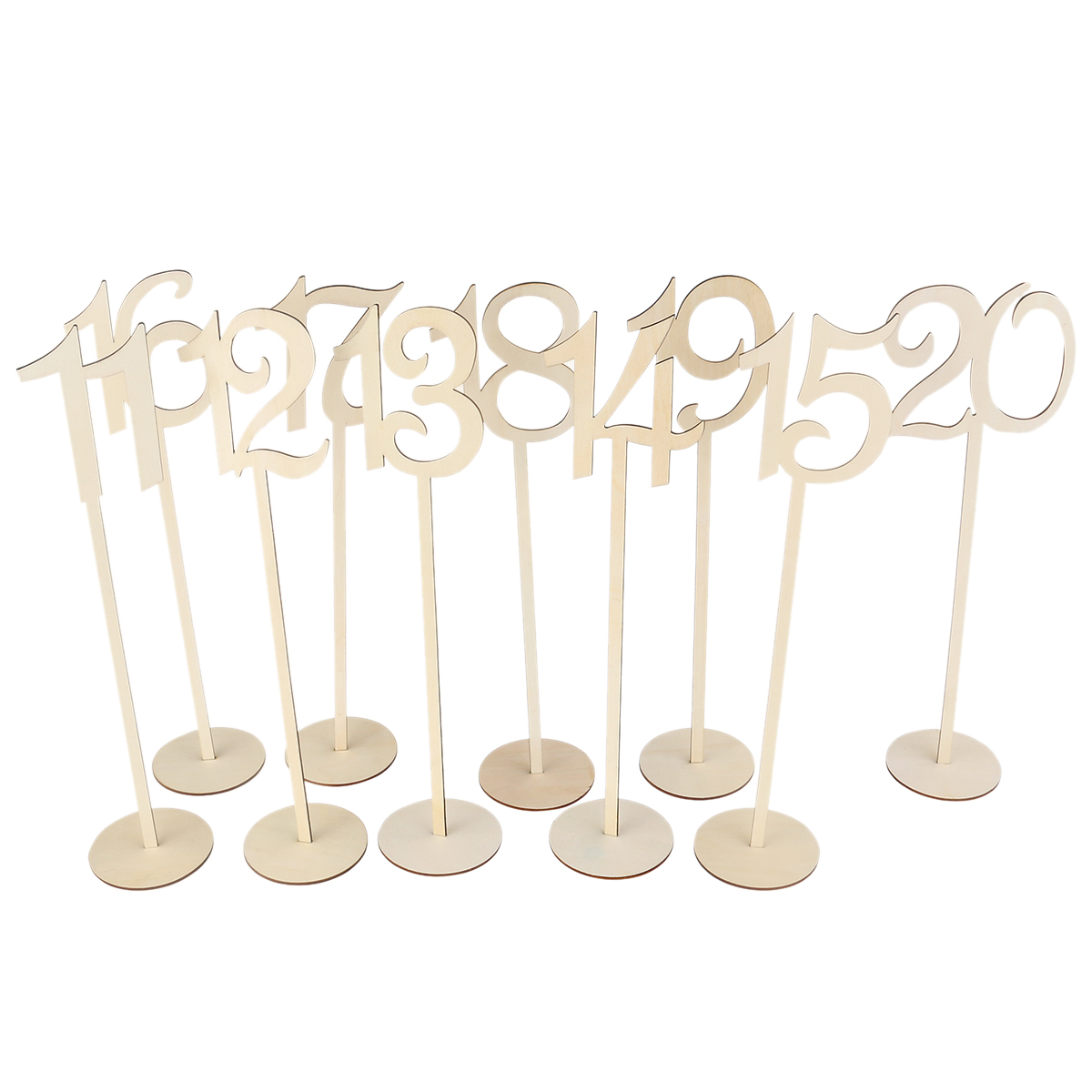 Номера и подставки для свадебных столов изготовлены из необработанной деревянной фанеры отличного качества.