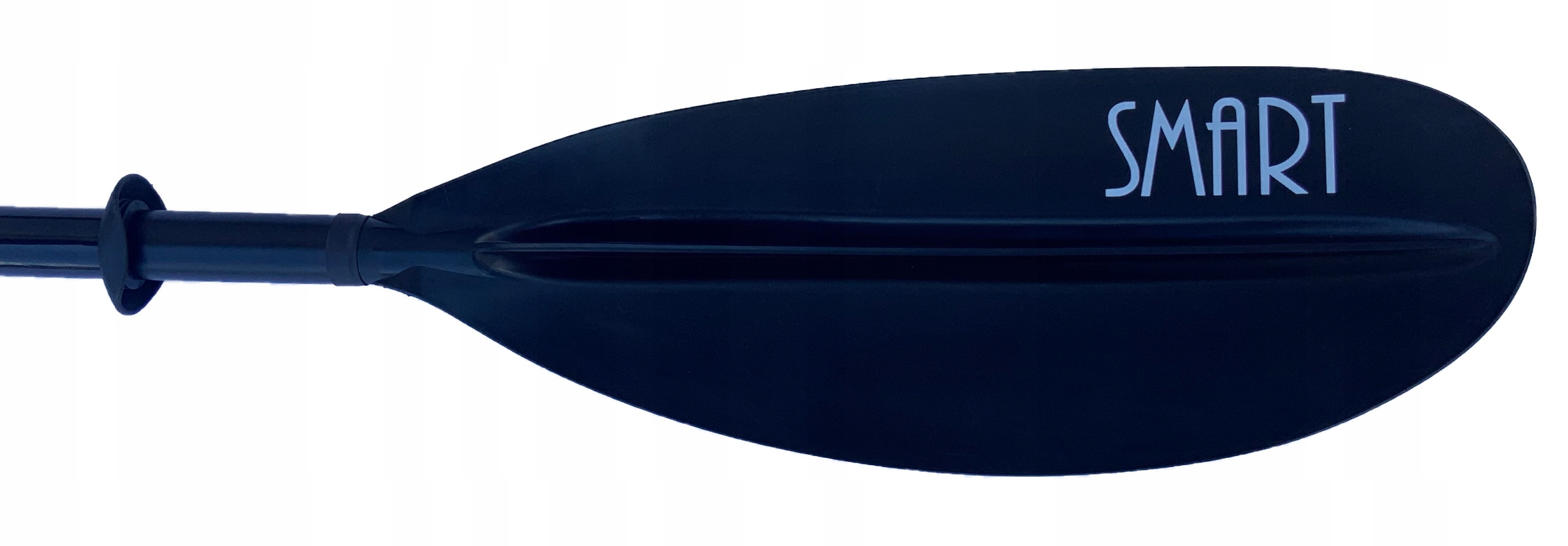 SMART - легкое весло, предназначенное для равнинного каякинга, с прочной лопастью из фибрилона (полипропилена, армированного стекловолокном), установленной на алюминиевом стержне с порошковым покрытием. черного цвета, защищен чехлом из ПВХ в точке захвата.