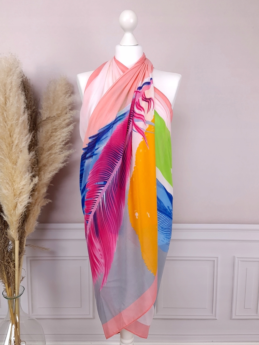 ВЕСНЯНИЙ ШАРФ великий шарф ПАРЕО шарф з пір'ям БАВОВНА - ГАРНІ КОЛЬОРИ
