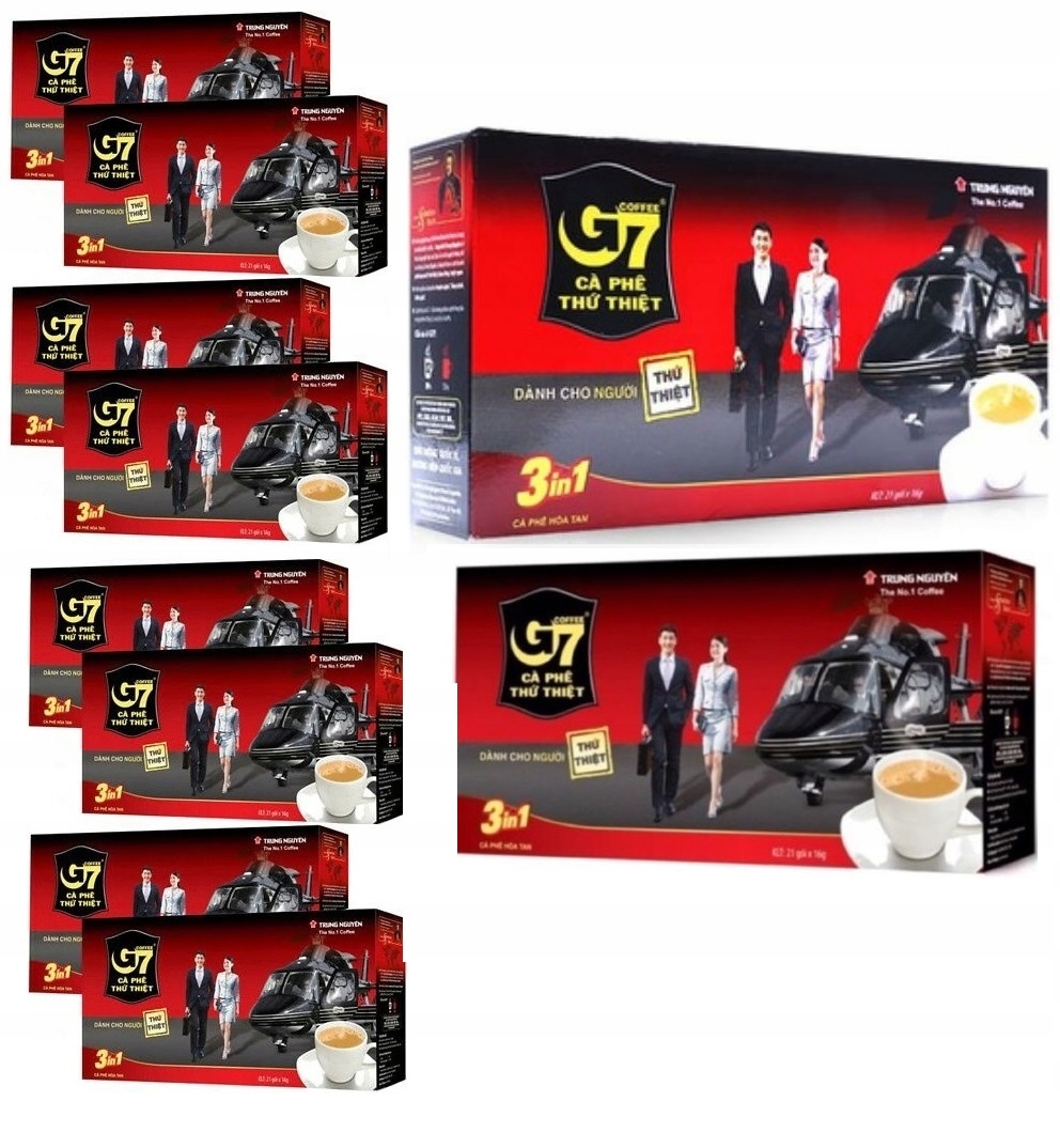 Trung Nguyen заказал самый современный производственный завод в Италии в Buon Me Thuot, чтобы обработать растворимый кофе G7 3-W-1 в 2002 году и с тех пор был самым популярным азиатским «белым кофе». Причина проста; Это единственный растворимый кофе в мире, обработанный из зеленых, необычных зерен, порошковой и жареных в той же операции. Этот процесс сохраняет больше вкуса и дает гладкую и горечь без кофе. Все остальные производители используют парный кофе, который так или иначе замораживается, что вызывает горечь.