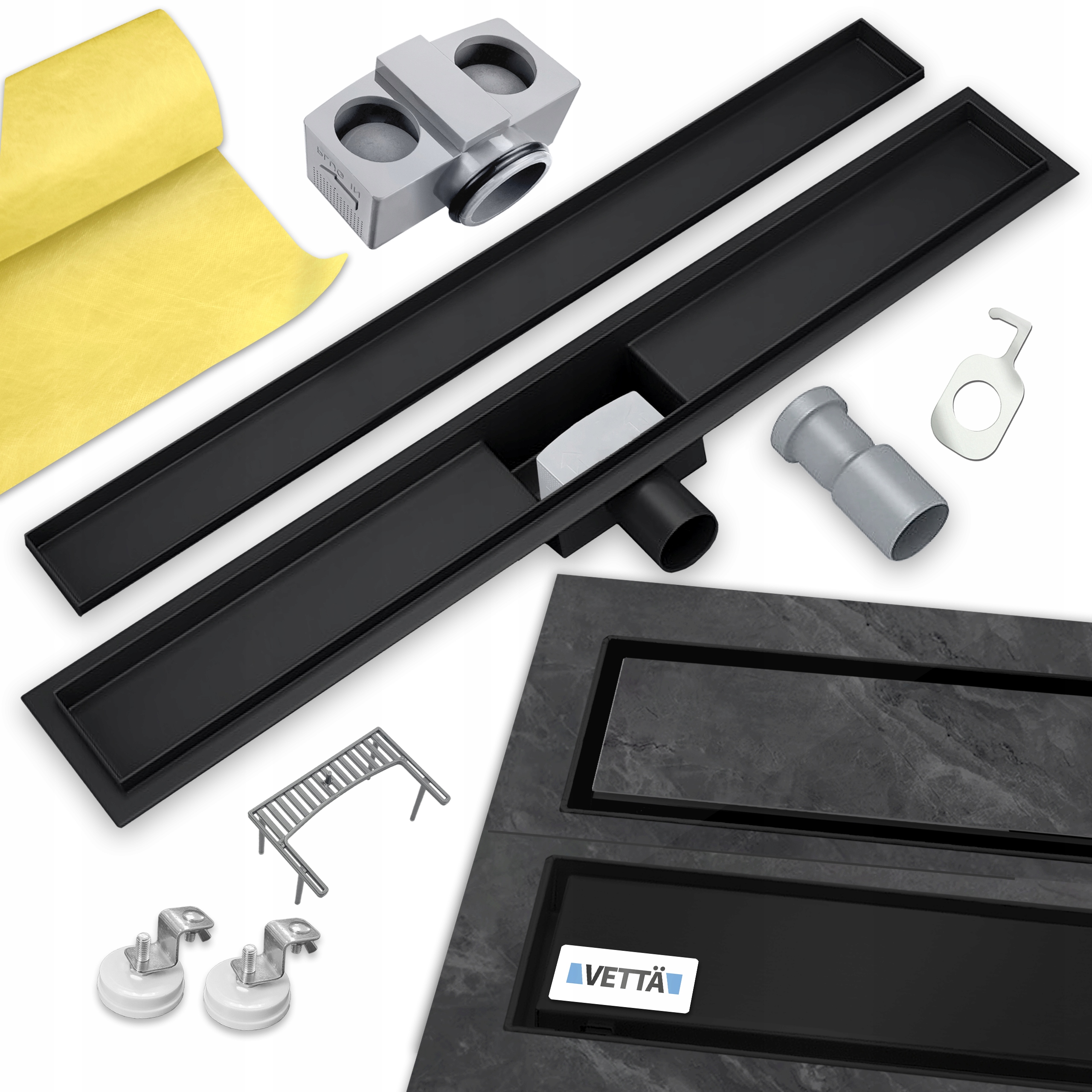VETTÄ ЛИНЕЙНЫЙ СЛИВ 2в1 60см НИЗКИЙ СИФОН 52мм ВЫСОКОЙ ПРОМЫШИТЕЛЬНОСТИ ЧЕРНЫЙ