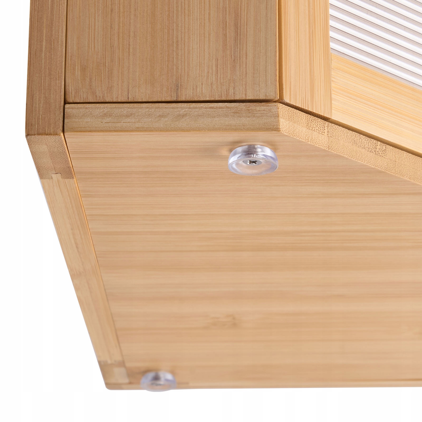 Этот столешница характеризуется уникальной угловой структурой, которая спасает пространство в углах кухни. Он имеет большую двойную емкость с регулируемыми отсеками. Сделанный из прочного бамбука, он дышащий и расширяет свежесть хлеба. Акриловые двери являются стильными и обеспечивают конфиденциальность. Магнитное покрытие крышки, не -скользящие ноги и другие практические детали способствуют очистке и установке.