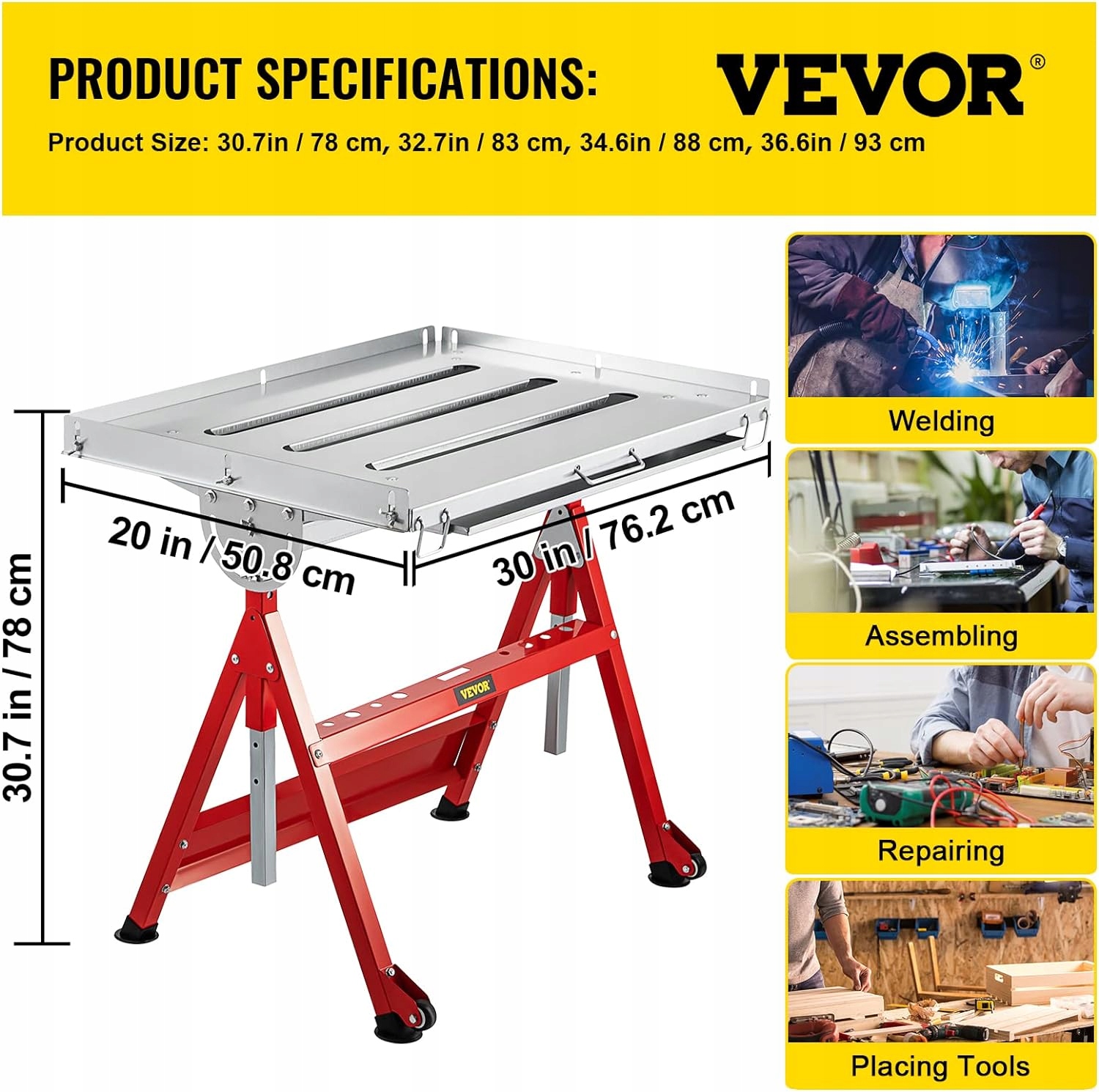 Vevor 76x51см Семинар сборки сборки Три промежутки шириной 4 см (1,6 дюйма) в вершине столешницы обеспечивают возможность исправления зажимов в любом месте таблицы. Три расширяемых, прямоугольных стальных направляющих служат руководством, ограничителем или натяжением. Сварное шлаковое покрытие поглощает протекающий шлак. Две ручки для монтажа сварки. Способность адаптироваться к различным рабочим материалам и соответствовать любым рабочим требованиям. Две ноги стола с колесами обеспечивают невыполнения движения и вращения стола. емкость до 181 кг. Обученная поверхность устойчива к ржавчине и обеспечивает длительное использование. ) и 93 см. Таблица семинаров.