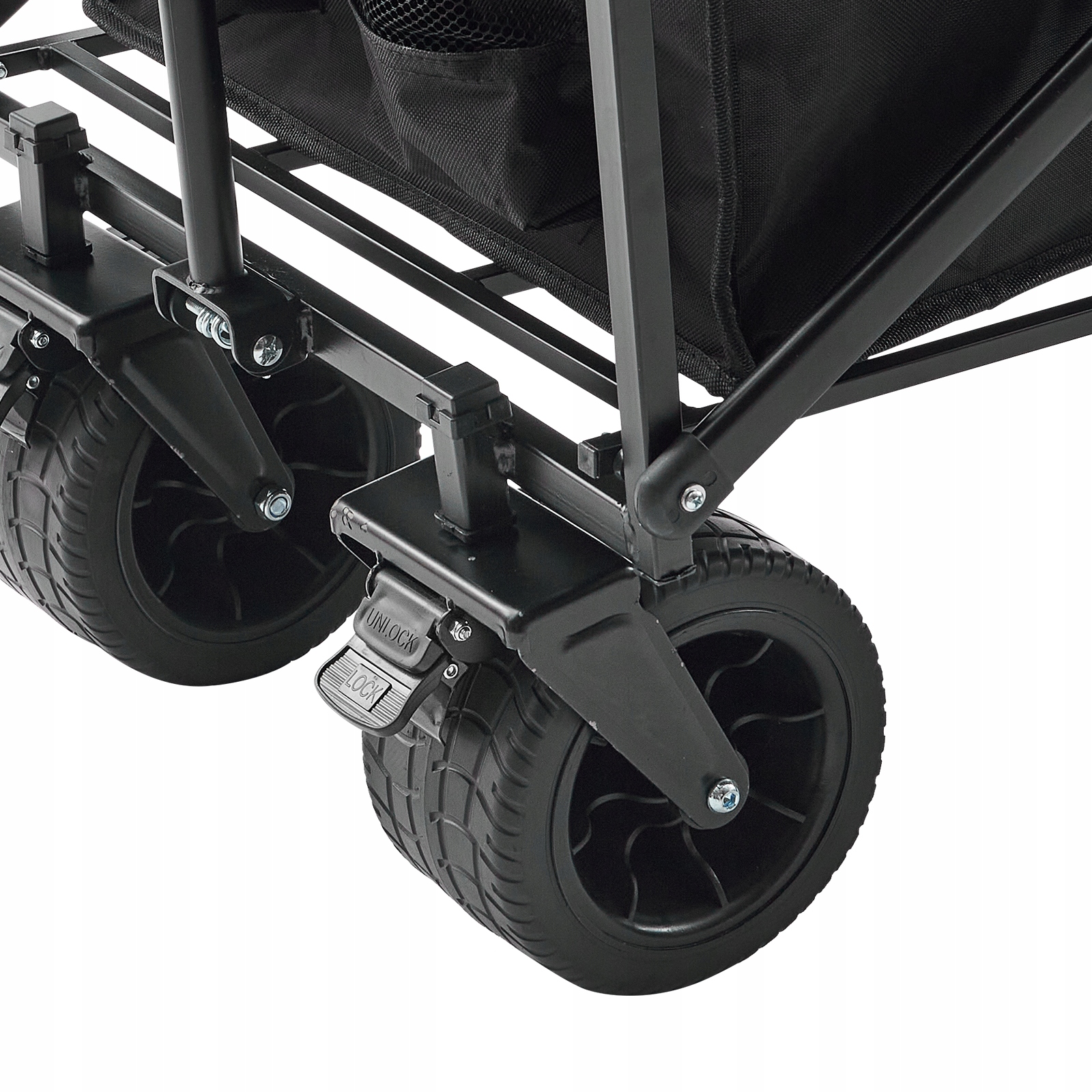 Благодаря грузоподъемности 350 фунтов и твердой железной раме, тележка вагона сложена для интенсивного использования. Изготовленная из прочной 600D Оксфордской ткани, она может нести все кемпинговое оборудование. Его поворотные колеса и тормоза обеспечивают плавное движение на каждой поверхности, а эргономическая ручка обеспечивает легкий и безопасный транспорт.