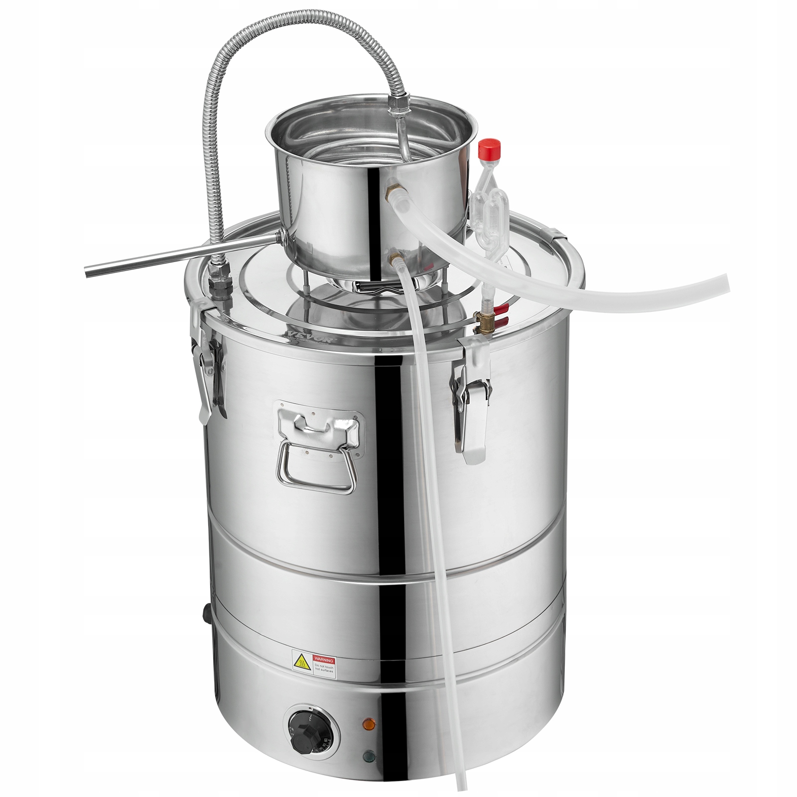 Все, что вам нужно сделать, это подключить источник питания, и он начинает перегонять. Высокая мощность 2800 Вт ускоряет скорость дистилляции и оснащена устройством сухого сгорания. После достижения температуры сухого сгорания (150 ℃) автоматически выключается, и когда температура охлаждения падает, она включается и автоматически сбрасывается, обеспечивая безопасность всего процесса дистилляции.