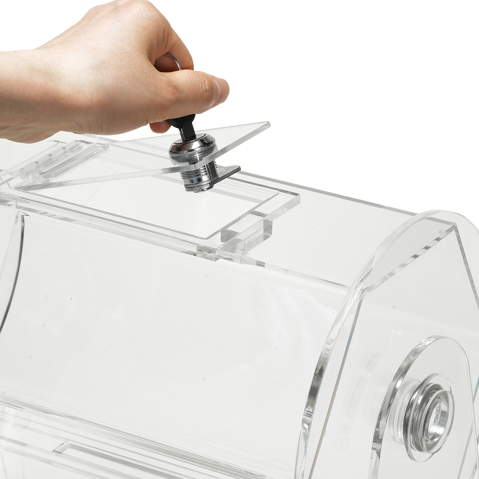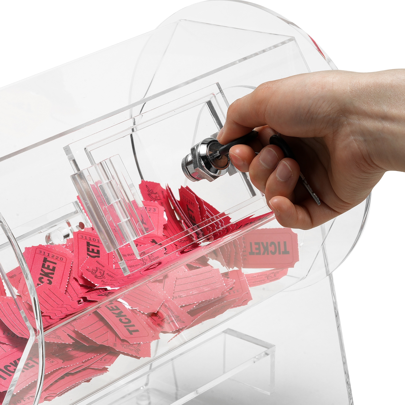 Прозрачный дизайн обеспечивает доступ к процессу жеребьевки и дает участнику равные шансы быть выбранным. Лотерейный барабан широко доступен для игр в бинго, общественных мероприятий, корпоративных мероприятий, выставок, мероприятий по сбору средств и многого другого.