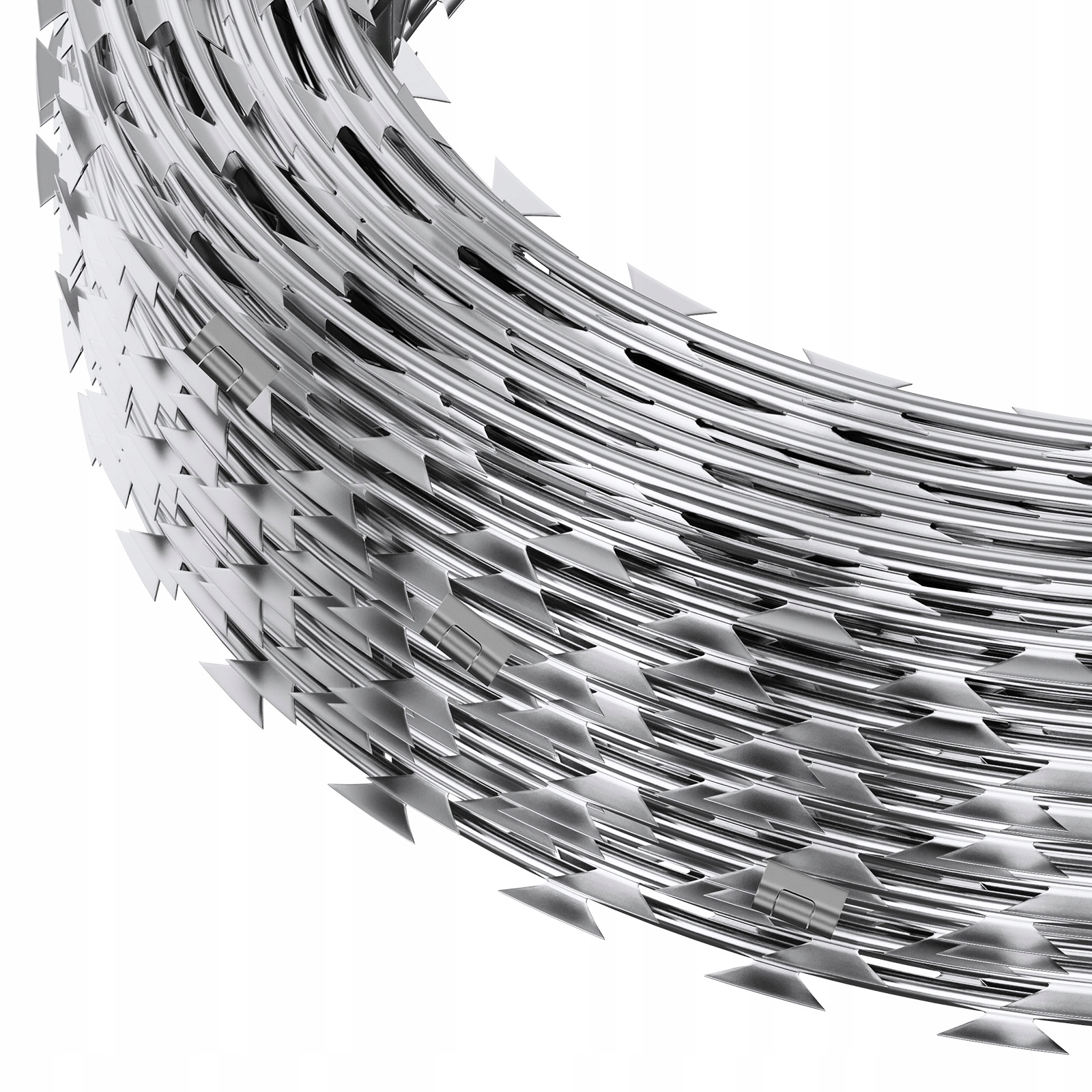 Острые бритвенные лезвия: Наша бритвенная проволока оснащена бритвенными лезвиями толщиной 0,02 дюйма (0,51 мм) и шириной 0,98 дюйма (приблизительно 25 мм), что свидетельствует о безопасности. Более длинные и острые лезвия с двойной спиральной безопасностью эффективно предотвращают проникновение злоумышленников.