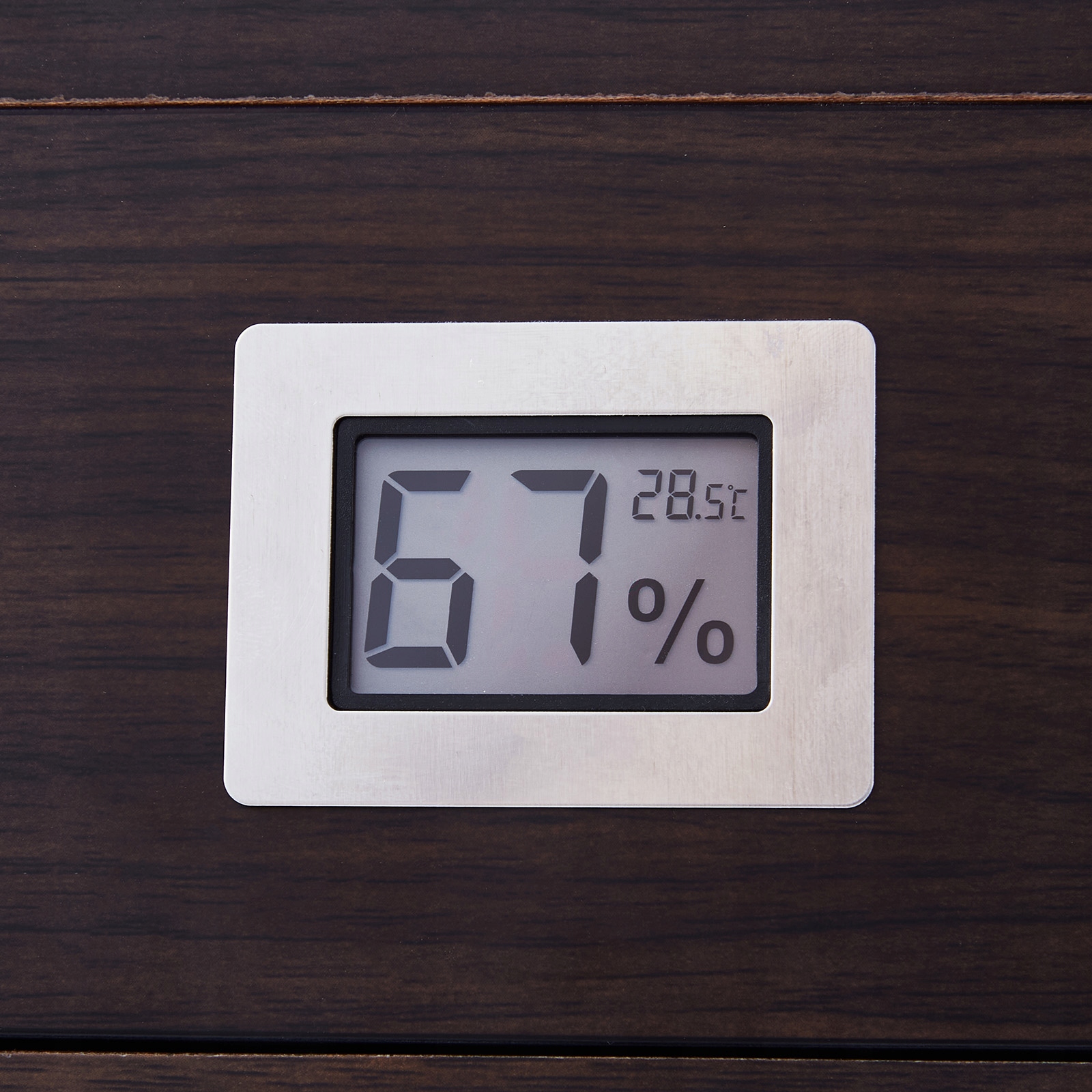 видимая влажность: настольная коробка с кедровыми сигарами оснащена гигрометром для наблюдения уровня влажности внутри хьюмидора. Когда влага отсутствует, вы можете добавить увлажняющий раствор сигар или дистиллированную воду в увлажнитель, поддержав уровень влажности внутри хьюмидора для лучшего хранения и старения сигар.