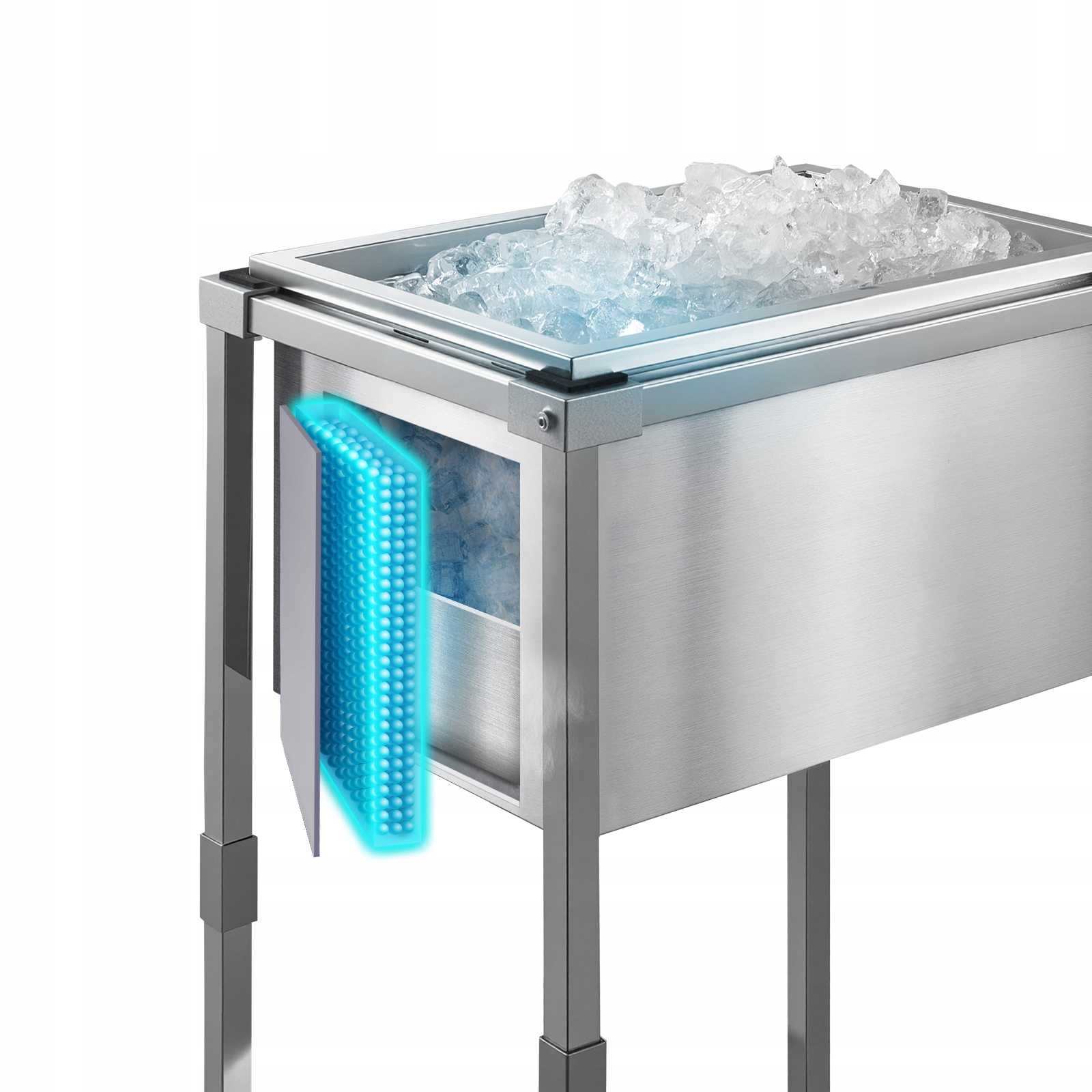 Материал из нержавеющей стали: ледяной кулер имеет сертификат NSF. Он изготовлен из нержавеющей стали, что делает ее долговечным и устойчивым к ржавчине. Интерьер использует интегрированный процесс полной сварки, значительно снижая возможность утечек