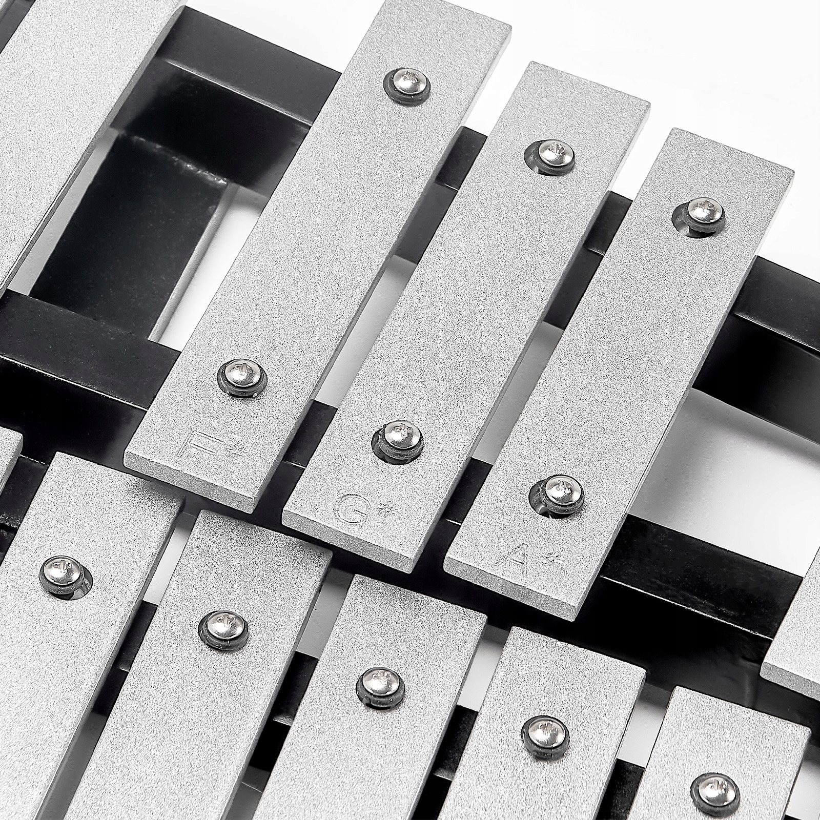 Профессиональный 32-тональный гонг: Профессиональный 32-тональный ксилофон предлагает тембр в диапазоне от F5 до C8 и включает 32 различных тона для более сложных музыкальных исполнений. Он имеет два ряда тонов — один для полутонов и один для целых тонов — и был создан с точностью с использованием передовых методов окраски распылением, чтобы обеспечить четкие и насыщенные тона. Каждая алюминиевая планка профессионально настроена и имеет четкую тональную маркировку для легкой идентификации.
