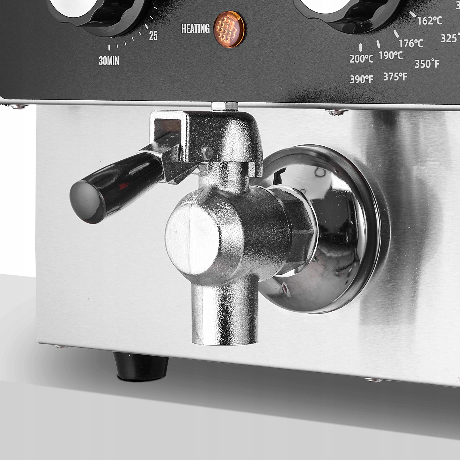 Установите температуру от 175 ° F до 390 ° F (80-200 ° C). Deep Fryer автоматически выключает, если температура превышает 446 ° F (230 ° C) или если происходит разрушение температуры регулятора. Он также оснащен таймером, чтобы напомнить вам.