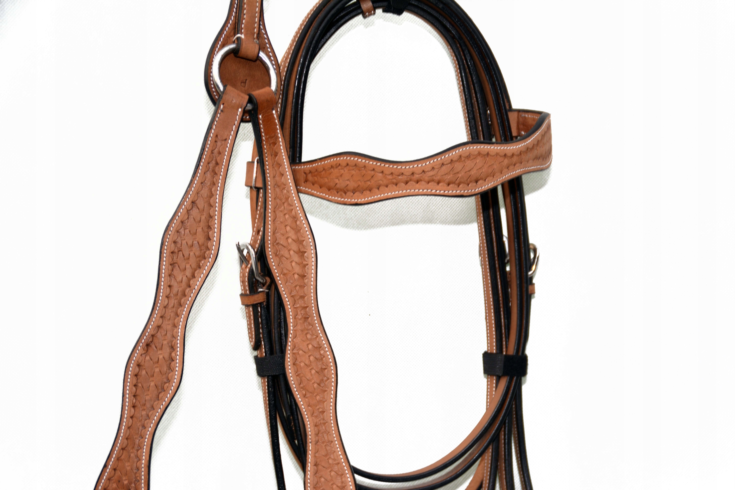Уздечка Western из США + поводья + размер нагрудника. PONY.Уздечка изготовлена на фабрике в США.Выполнена из воловьей кожи высочайшего качества,очень мягкая и приятная на ощупь,налобная и нащечная лямки декорированы.Уздечка застегивается и регулируется устойчивыми пряжками,изготовлена из очень хорошей нержавеющая сталь.Единственная подобная модель в Польше.Спешите приобрести.