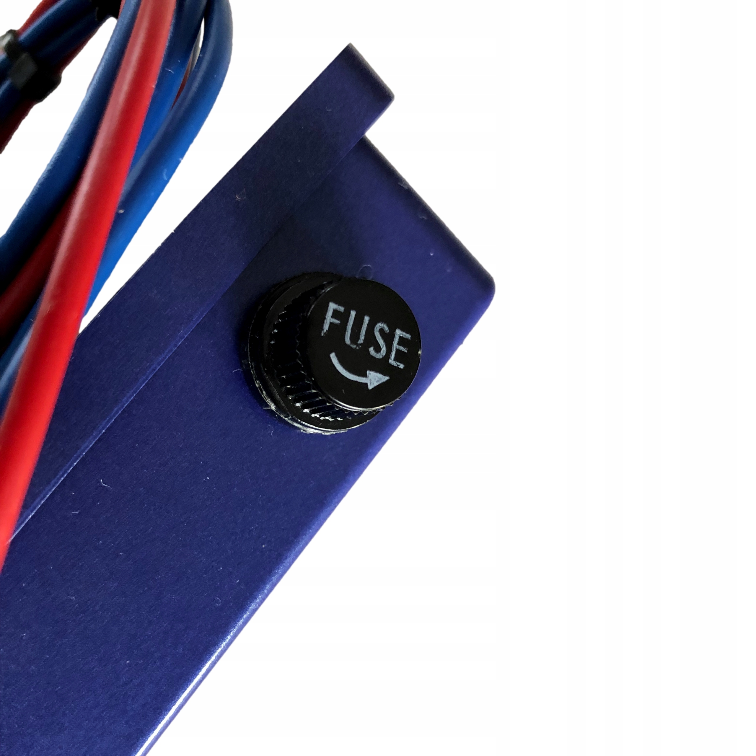 Два кабеля (длиной 90 см) с проушиными разъемами подключаются к винтам клемм аккумулятора. Способ установки описан в инструкции, прилагаемой к устройству. Устройство имеет встроенную розетку с предохранителем — дополнительную защиту от короткого замыкания для нашей установки.