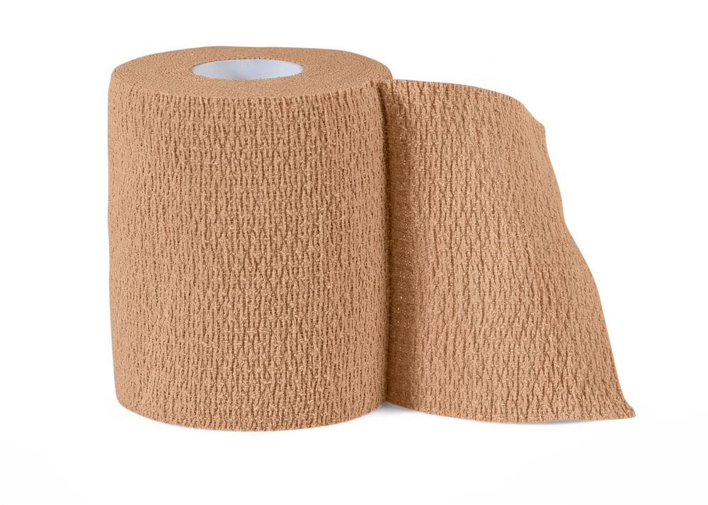 Самоадгезивный гибкий сжатие, стабилизирует мышцы и уменьшает их напряжение, тем самым улучшая кровоток. Сделано из 95% хлопка и 5% от спандекса, не придерживается кожи, а в повязке. Устойчивый к поту и воде может использоваться при занятий спортом. Несмотря на высокую адгезию, этого достаточно, чтобы разорвать твердое движение руки.