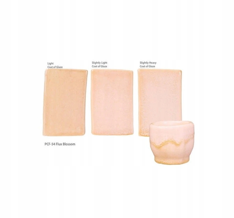 Flux Amaco Potter Choice PCF-54 Blossom представляет собой высококлассную, протекающую эмали, которая после выгорания дает блестящую отделку в светло-розовой пастельной, напоминающей цветок вишни. С более толстым слоем эмаль берет персиковой оттенок.