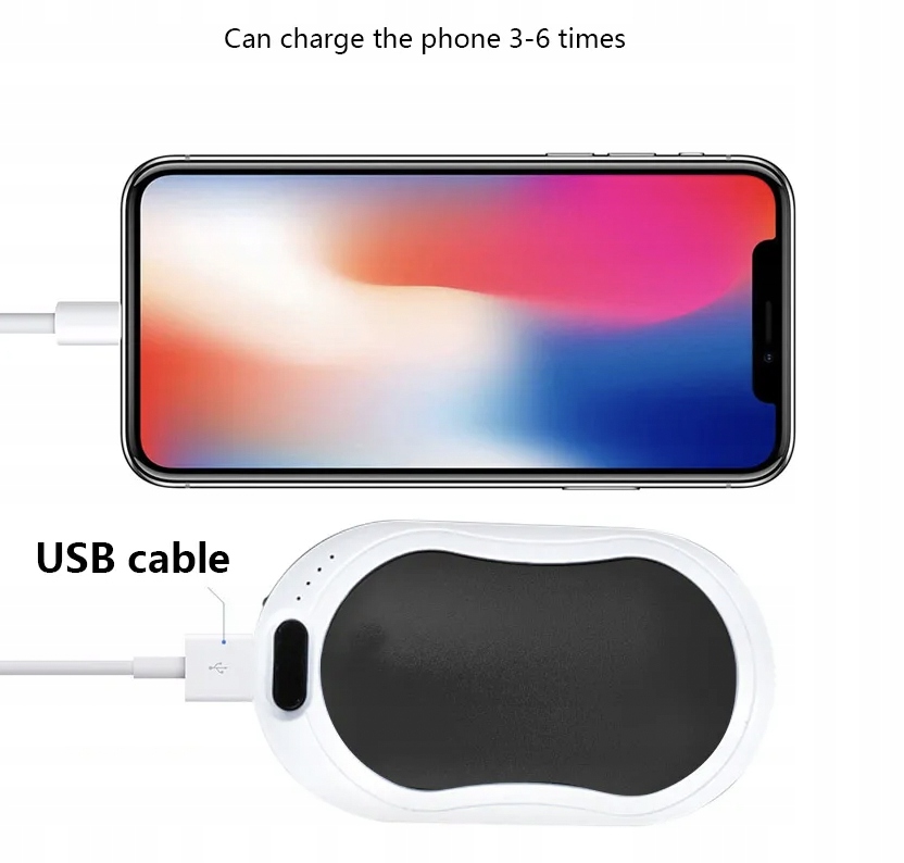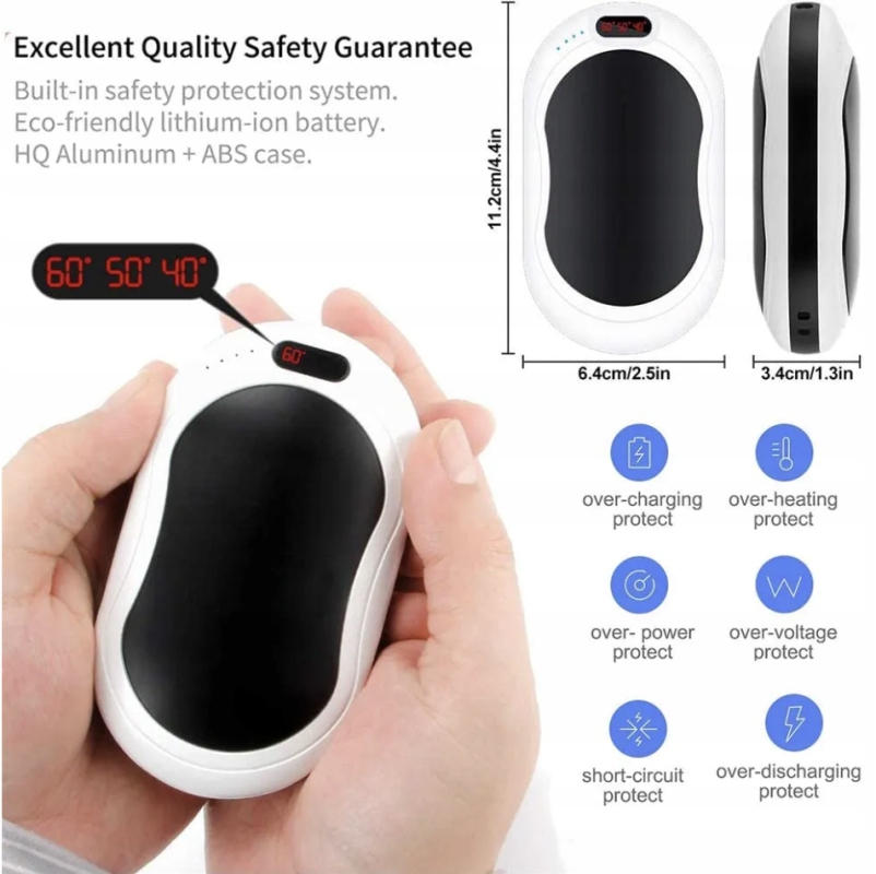 Этот многофункциональный гаджет является не только практичной грелкой для рук, но и работает как powerbank емкостью 10 000 мАч. Он идеально подходит для холодных дней, когда нужно быстро согреть руки и в в то же время вы можете заряжать свои электронные устройства в путешествии. Грелка для рук выполняет вибрационный массаж, который помогает стимулировать кровообращение и снять мышечное напряжение. Дополнительно оснащен светодиодным фонариком и функцией смены цвета, что повышает уровень удобства использования.