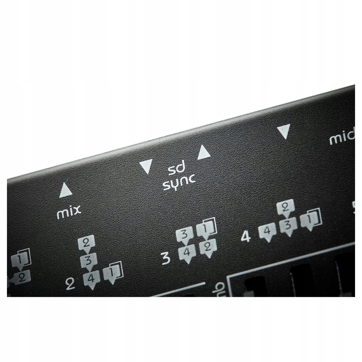 Если для каждого шаблона не установлена определенная длина, возможна любая длина до 64 шагов. С помощью встроенных кнопок можно легко и просто выбрать длину паттерна и назначить шаги в паттернах. Благодаря двум основным режимам работы, Kit/Patt и Step, в вашем распоряжении гибкий набор функций, отвечающий любым потребностям как в студии, так и на сцене. Режим Kit/Patt идеально подходит для джема и исполнения с паттернами и наборами, а режим Step работает как традиционный секвенсор в стиле X0X.
