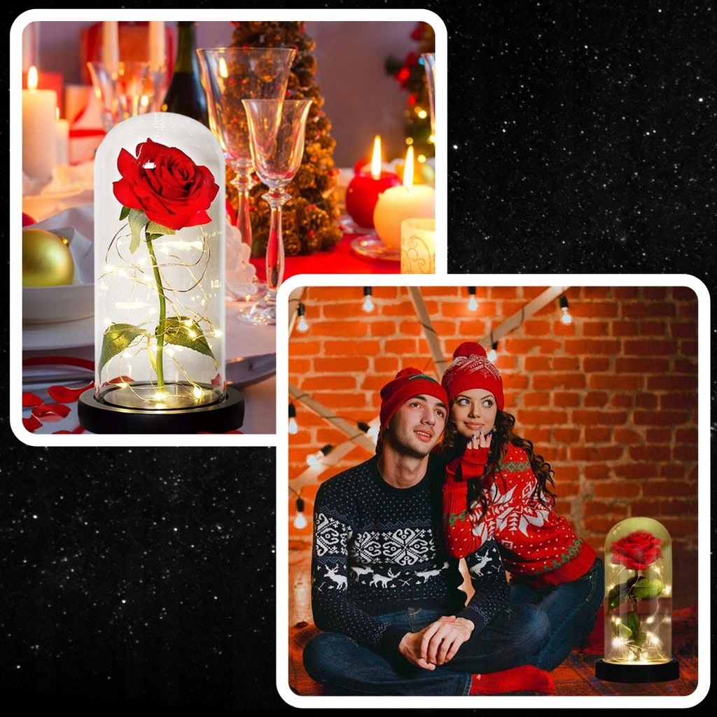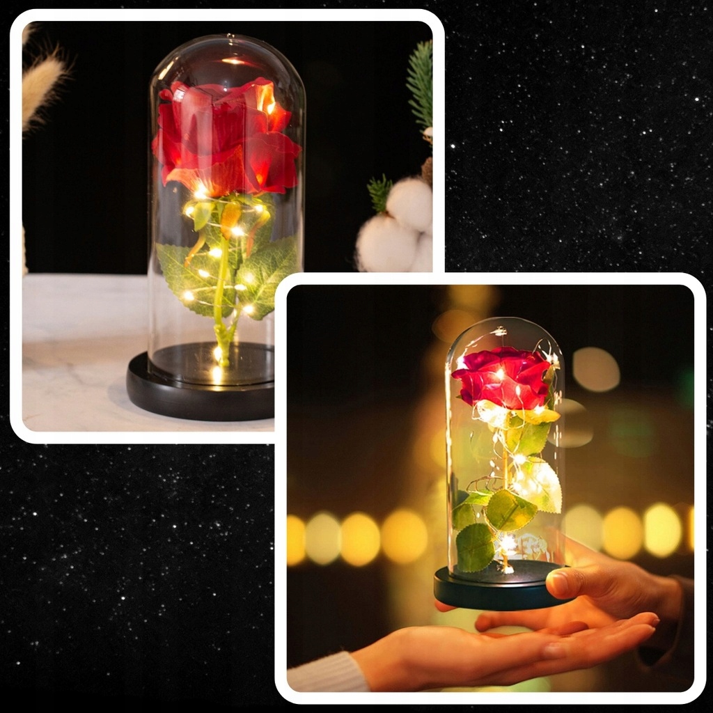 ➡️ МОДИСПОЛЬЗОВАННОЕ СВЕТОДИОДНОЕ ОСВЕЩЕНИЕ — нежные светильники, окружающие розу, создают теплое, романтическое свечение, красиво освещающее интерьер. Свет создает уютную атмосферу, идеальную для вечерних моментов.