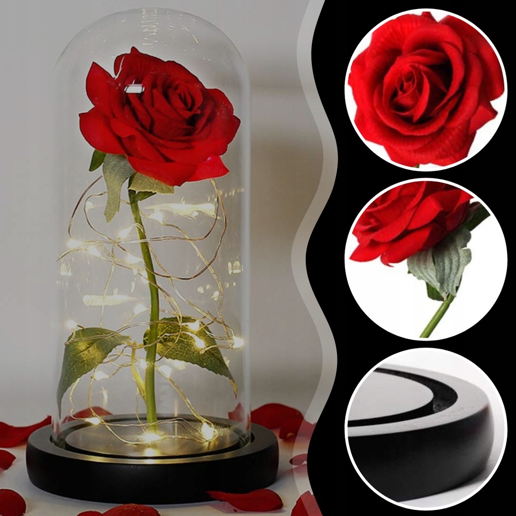 ВЕЧНАЯ КРАСНАЯ РОЗА В СТЕКЛЕ, СВЕТЯЩИЙСЯ СВЕТОДИОД, ПОДАРОК, РОЖДЕСТВЕНСКАЯ ИДЕЯ