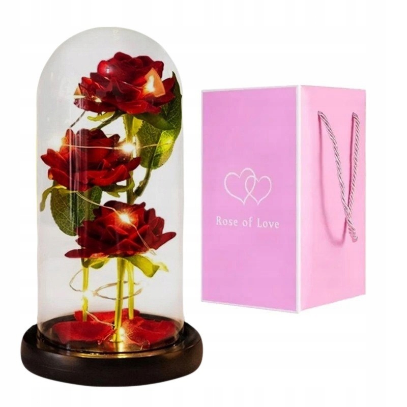 ВІЧНА РОЗА ДО ДНЯ СВЯТОГО ВАЛЕНТИНА ПОДАРУНОК КРИСТАЛ ПІД СКЛОНИМ КУПОЛОМ LED