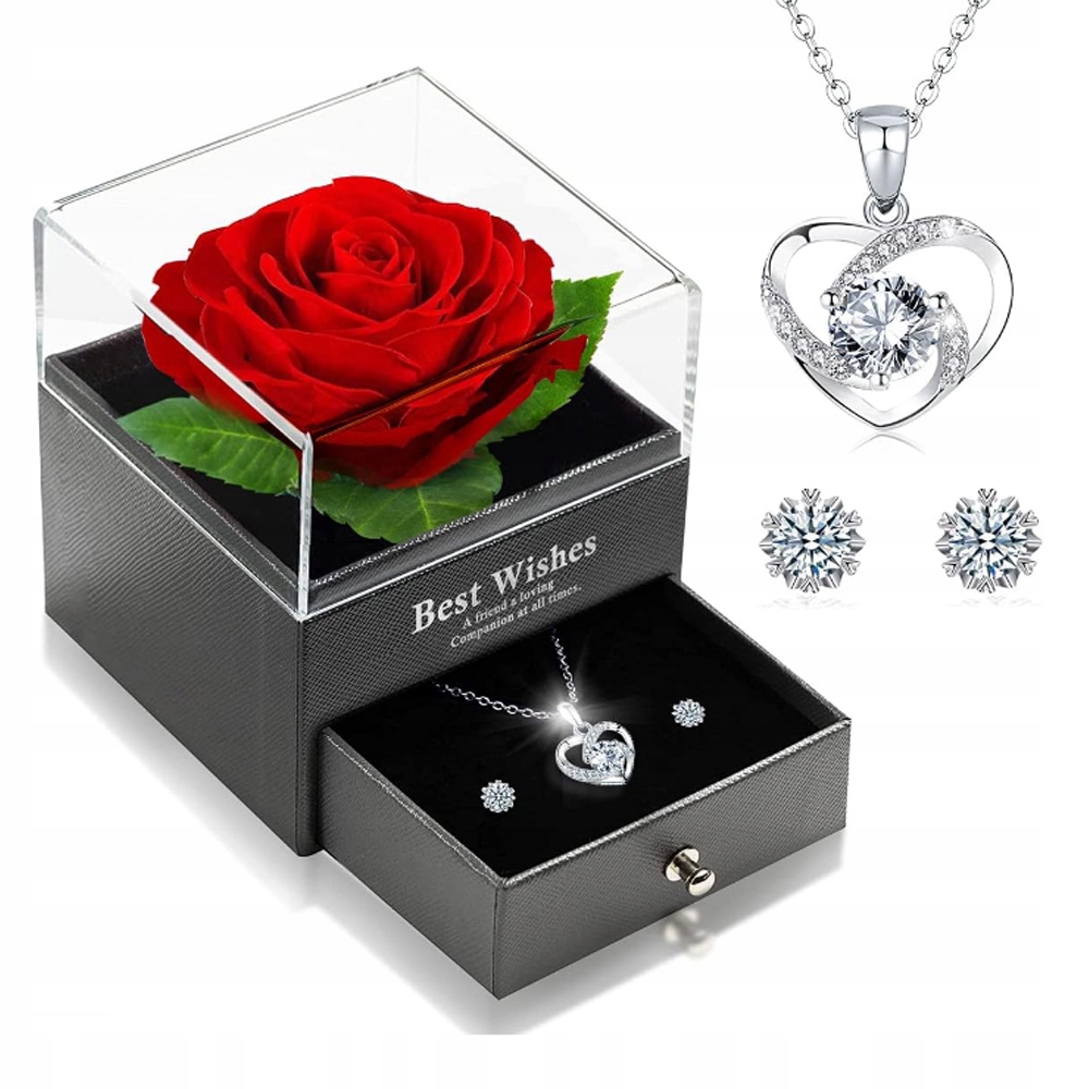 🌹В комплект входят поздравительная открытка и подарочный пакет: В комплект поставки колье Eternal Rose входит красивый подарочный пакет и открытка. Цепочка ожерелья регулируется и подходит большинству женщин. Красиво оформленная коробка с вечными розами. Наша упаковка вам понравится.
