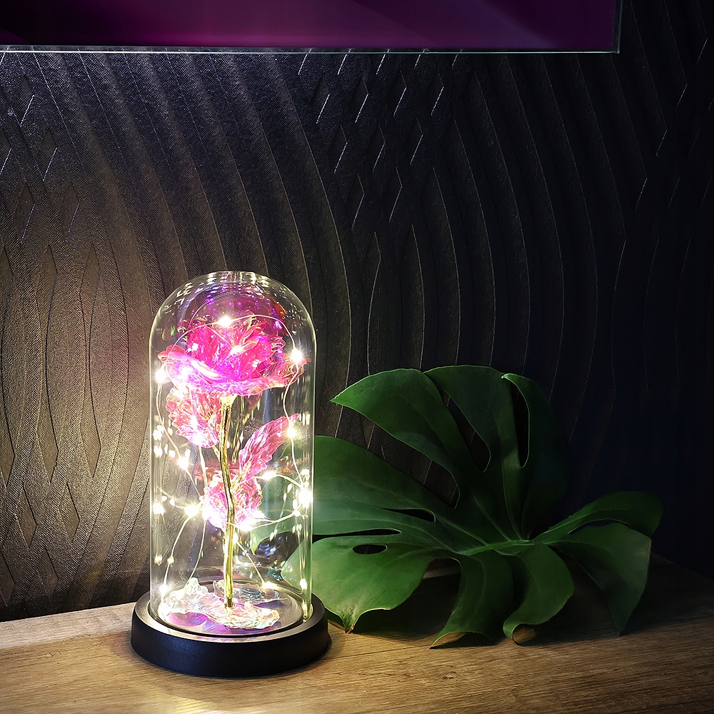 - ВСТРОЕННЫЕ СВЕТОДИОДНЫЕ ПОДСВЕТКИ – вечная роза окружена светодиодами, которые красиво ее освещают. Благодаря этому он выглядит чрезвычайно эффектно. Размещенный на прикроватной тумбочке, комоде или столе, цветок создаст волшебную атмосферу, которая напомнит вам о ваших чувствах.