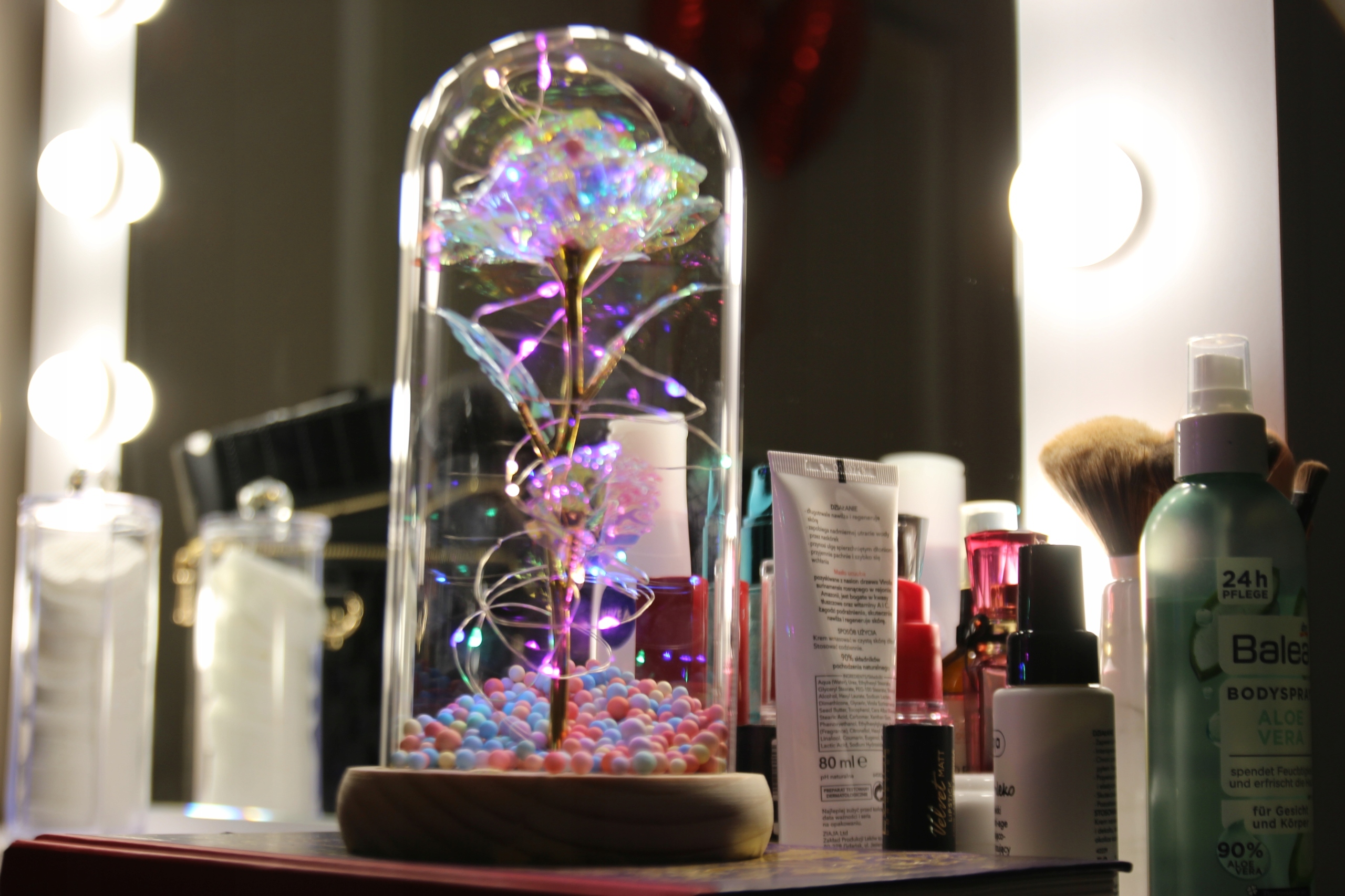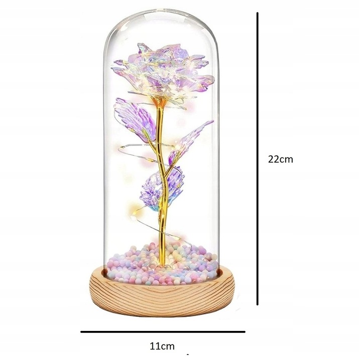 Вечная роза – идеальный вариант решение, продукт никогда не сломается. Кроме того, благодаря встроенным светодиодным светильникам, его можно использовать как ночник, что дает нам подарок 2 в 1.