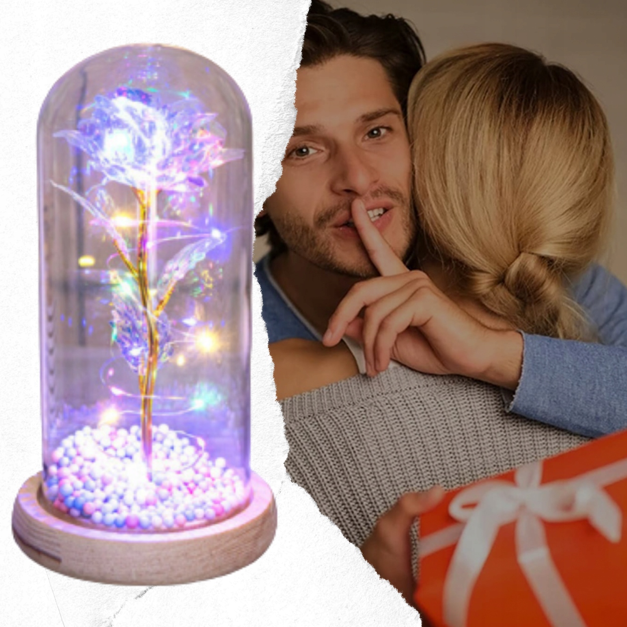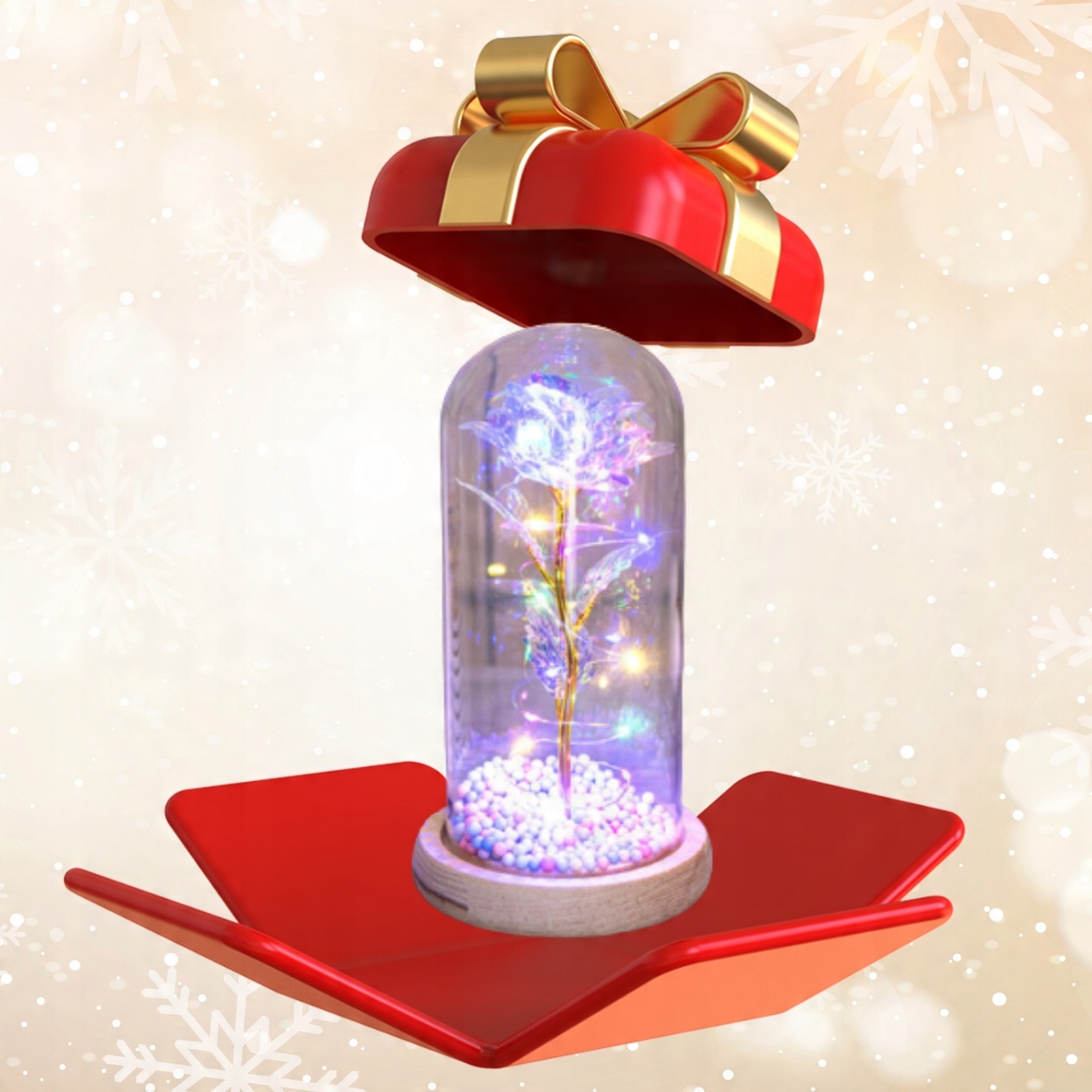 ВЕЧНАЯ РОЗА В СТЕКЛЕ, СВЕТЯЩАЯСЯ СВЕТОДИОДНАЯ КОРОБКА, ИДЕЯ ПОДАРКА ДЛЯ НИКОЛОГА