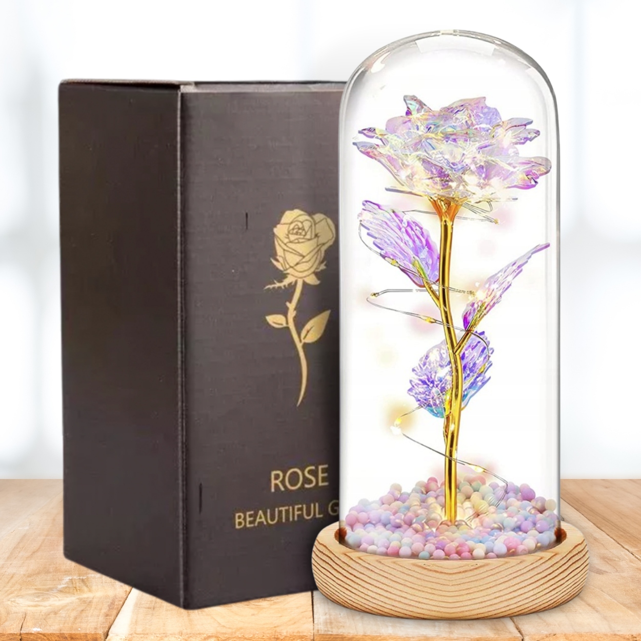 ВІЧНА ТРОЯНДА У СКЛІ, СВІТИТЬСЯ LED BOX, ІДЕЯ ПОДАРУНКУ ДО ДНЯ МИКОЛАЯ