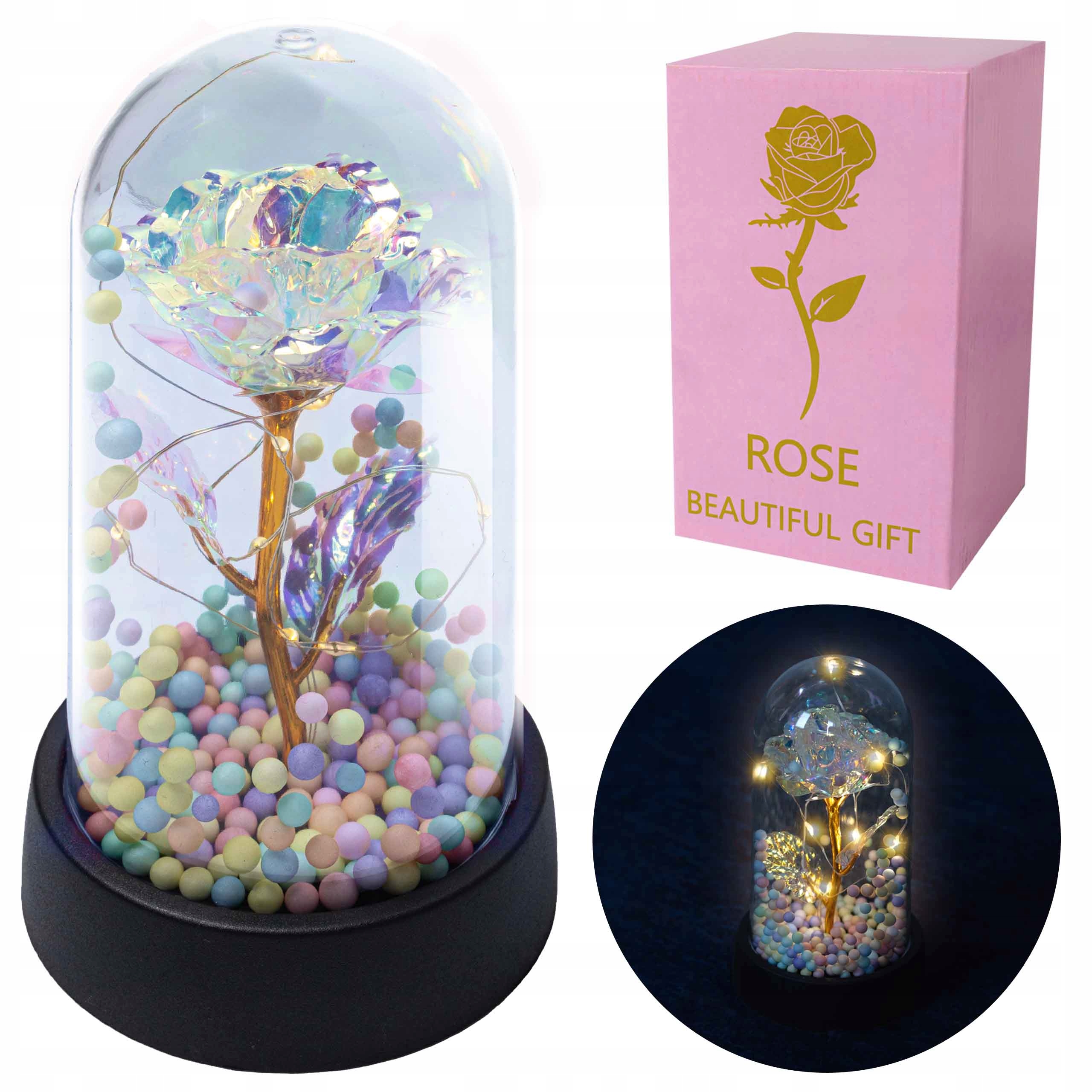 ВЕЧНАЯ РОЗА В СТЕКЛЕ, СВЕТЯЩИЙСЯ СВЕТОДИОД, ИДЕЯ ДЛЯ ПОДАРКА, КРАСИВОЕ ЗОЛОТО, БЕЛОЕ