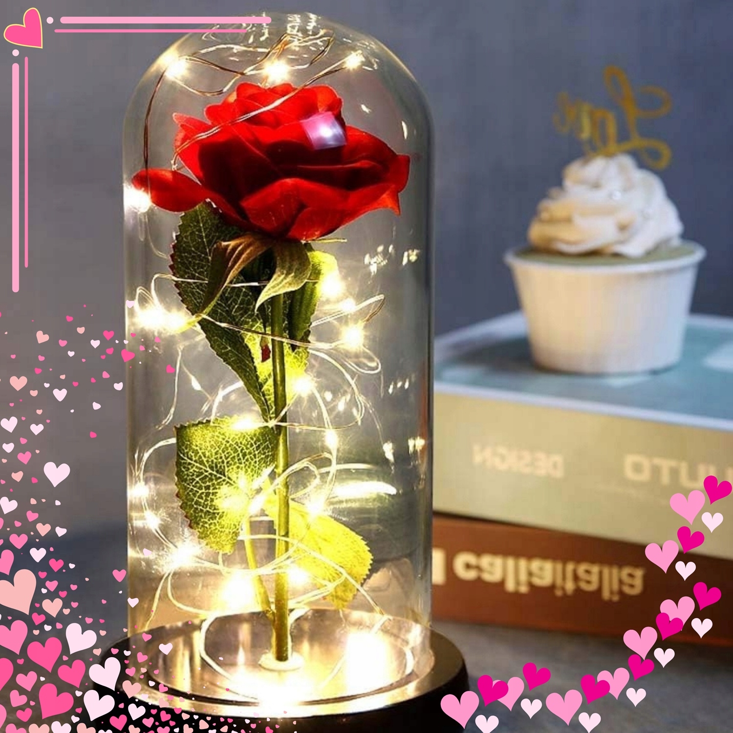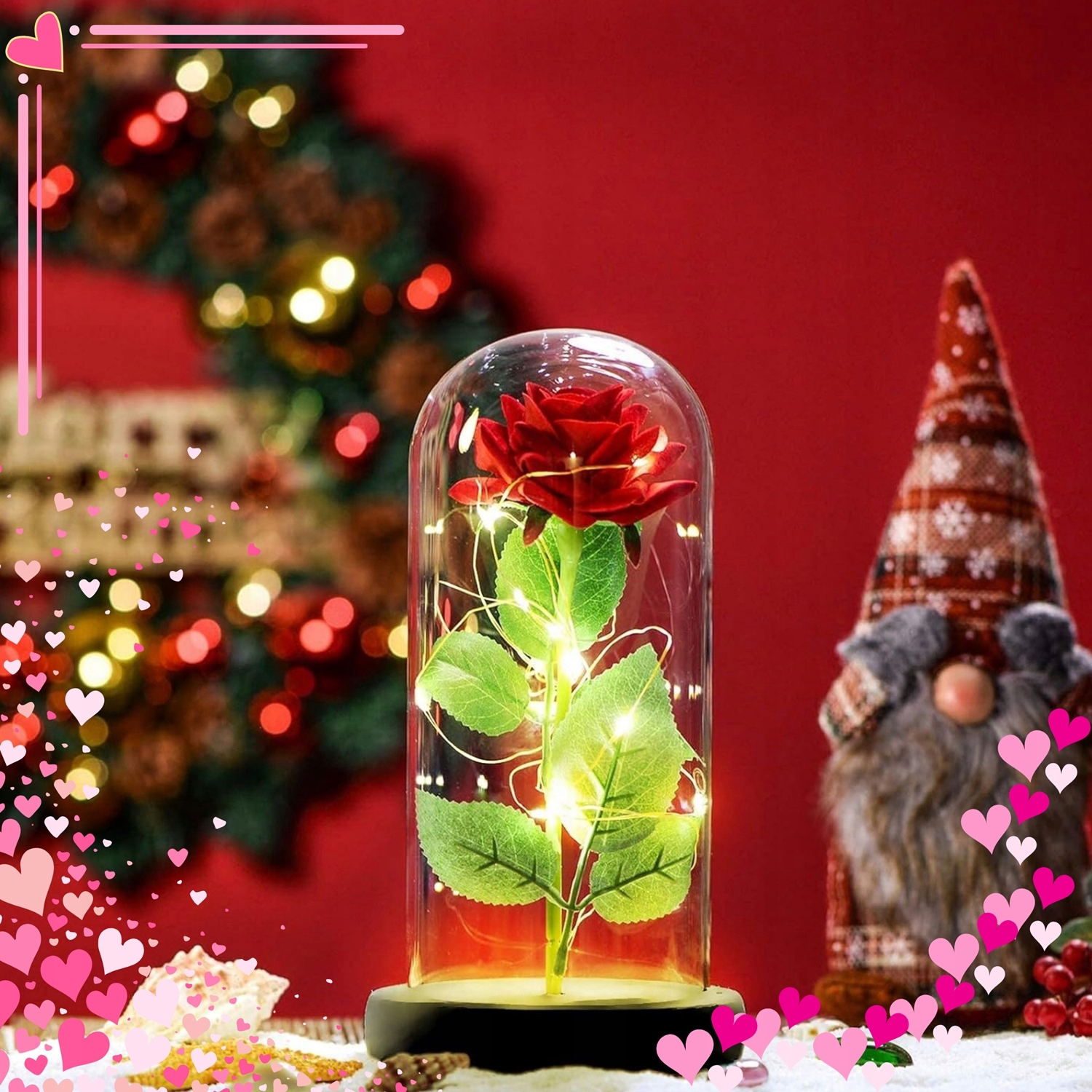 ВІЧНА ТРОЯНДА У СКЛІ, СВІТІВНИЙ СВІТЛОДІОДНИЙ РІЗДВЯНИЙ ПОДАРУНОК, ЯК СПРАВЖНЯ + КОРОБКА