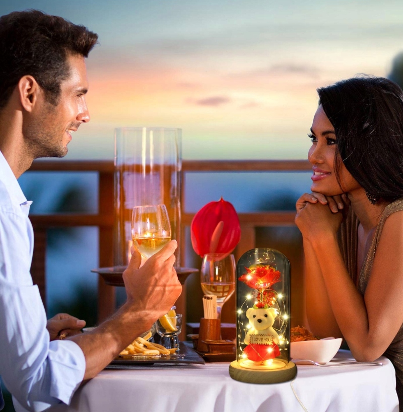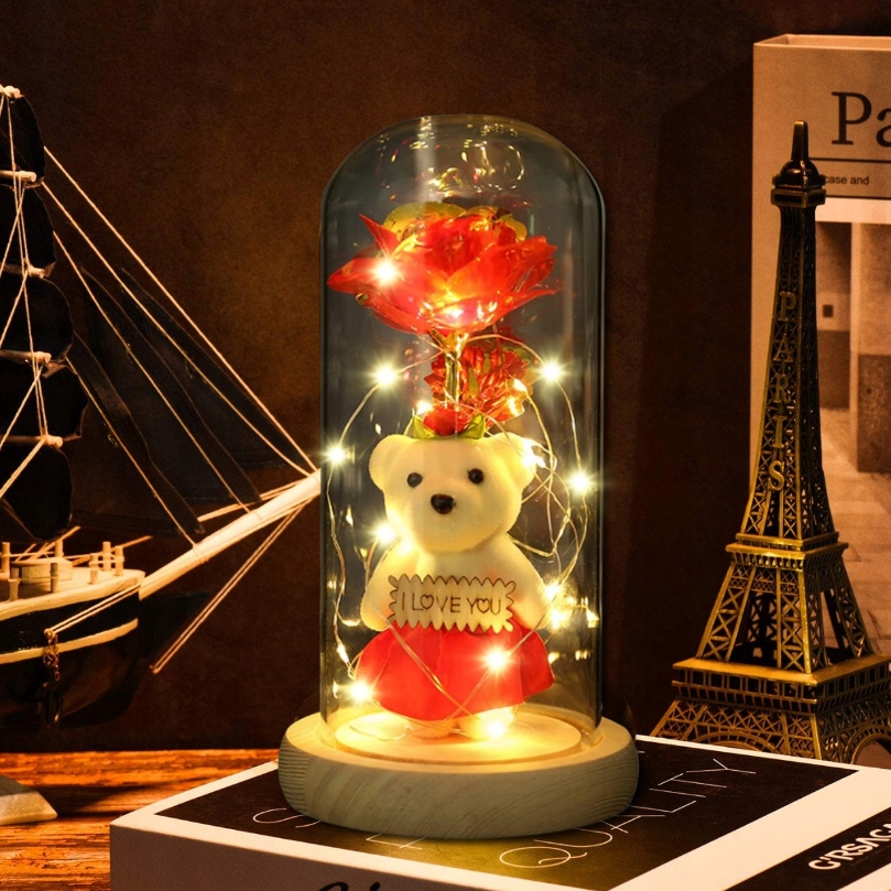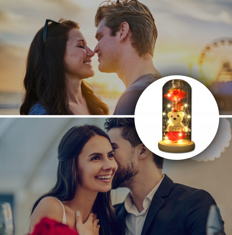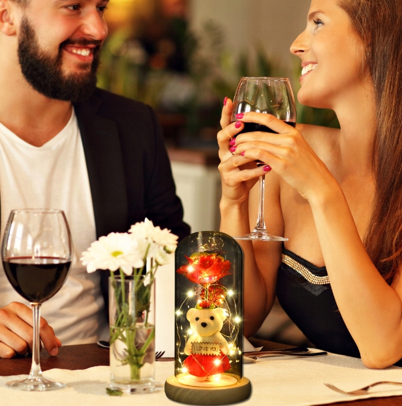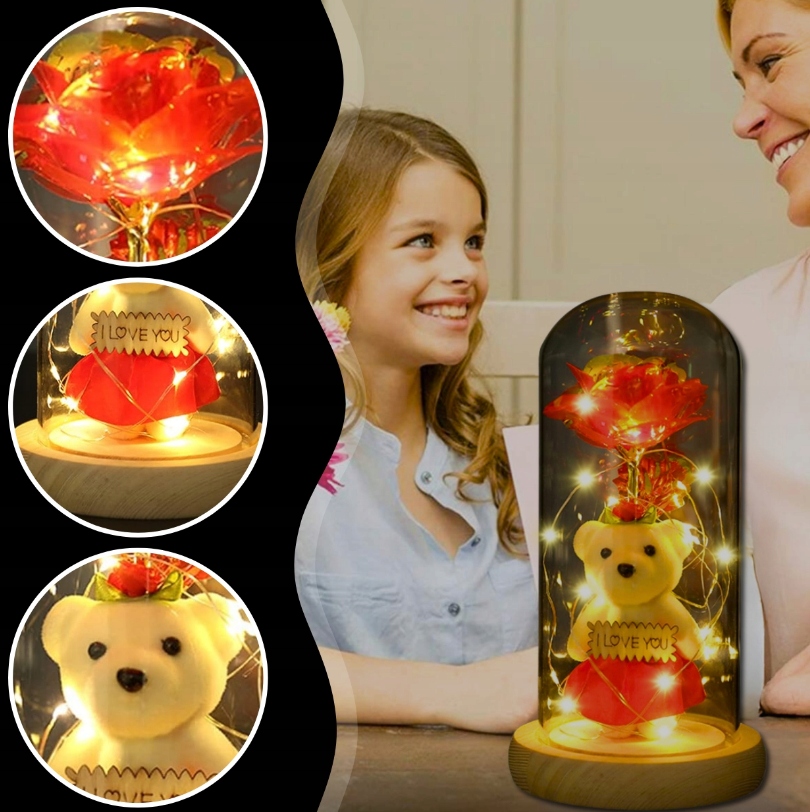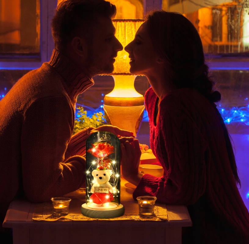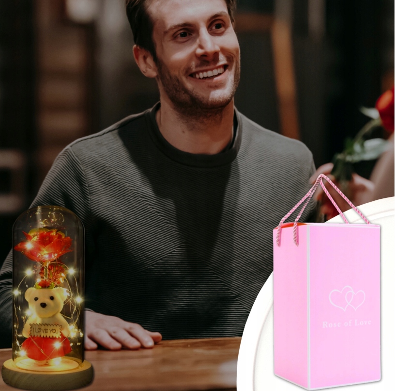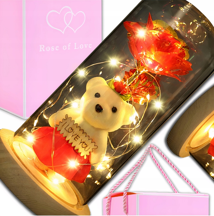 ВІЧНА ТРОЯНДА У СКЛІ, СВІТЯЧА СВІТЛОДІОДНА КОРОБКА, ПОДАРУНОК ДЛЯ ЇЇ НА ДЕНЬ СВЯТОГО ВАЛЕНТИНА