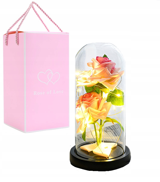 ВІЧНА ТРОЯНДА У СКЛІ GLASS LED PINK GIFT BOX CHRISTMAS