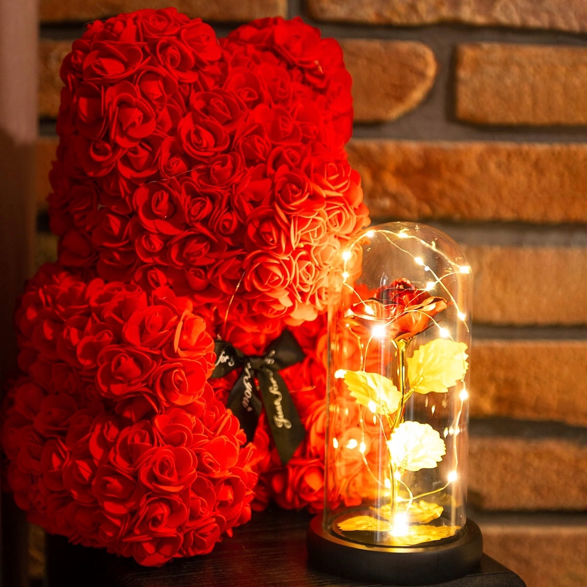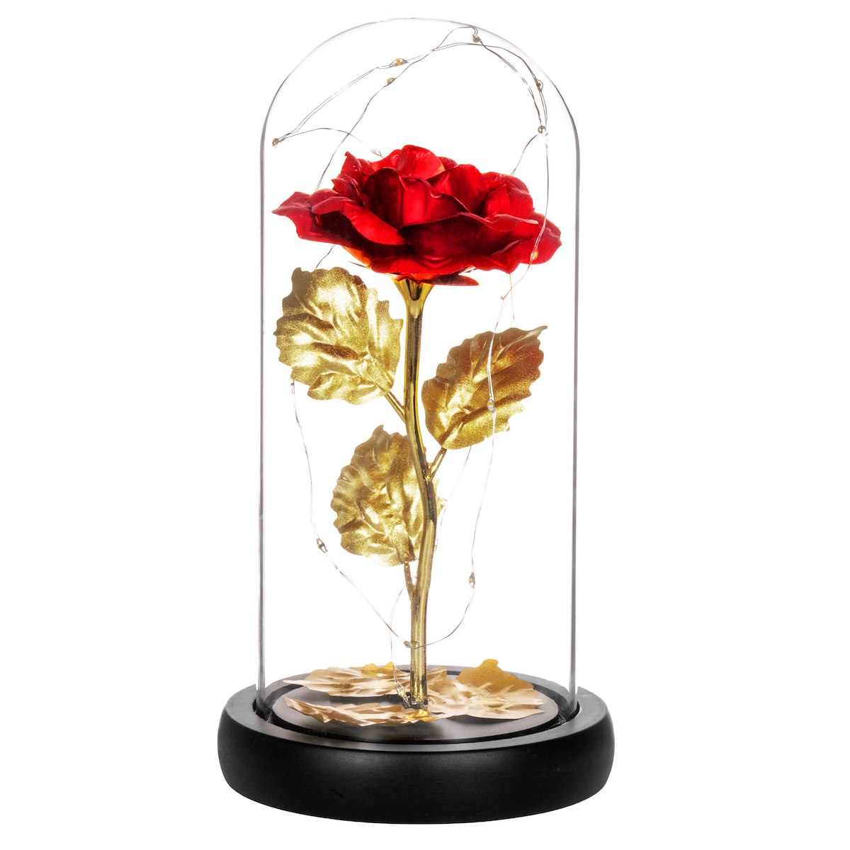 ВІЧНА ТРОЯНДА У СКЛІ ПОДАРУНОК СВІТИТЬСЯ ЗОЛОТО НА ЖІНОЧИЙ ДЕНЬ