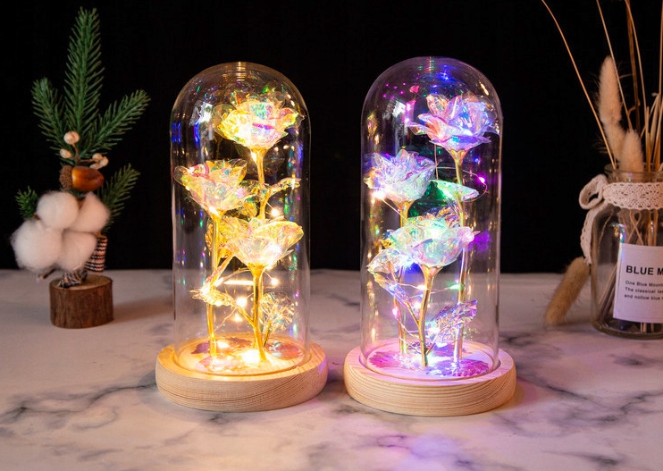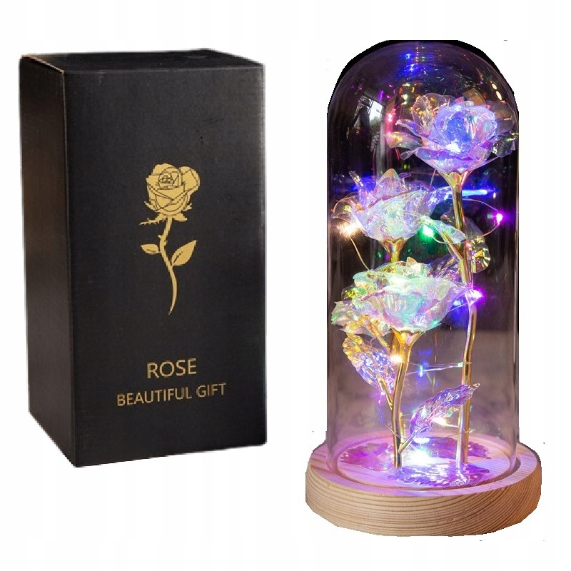 ВІЧНА ТРОЯНДА У СКЛІ СВІТІВНЕ СКЛО LED КОЛЬОРОВА КОРОБКА ПОДАРУНОК РІЗДВО