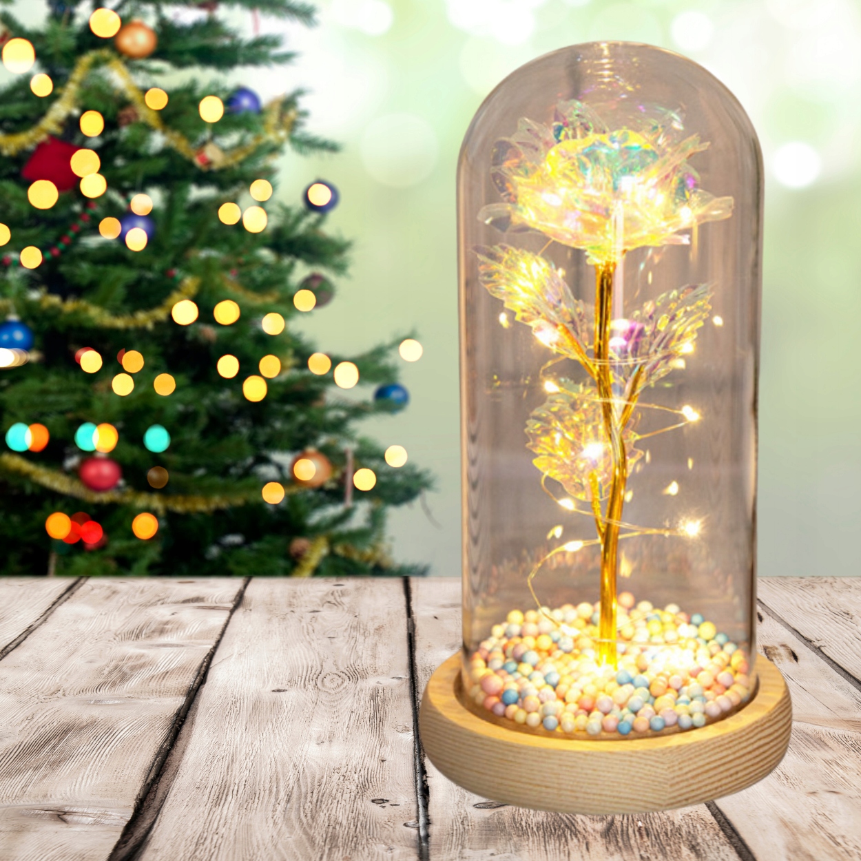 ВІЧНА ТРОЯНДА У СКЛІ ЗОЛОТА СВІТИТЬСЯ СВІТЛОДІОДНА КОРОБКА ПОДАРУНОК РІЗДВЯНА ЗІРКА