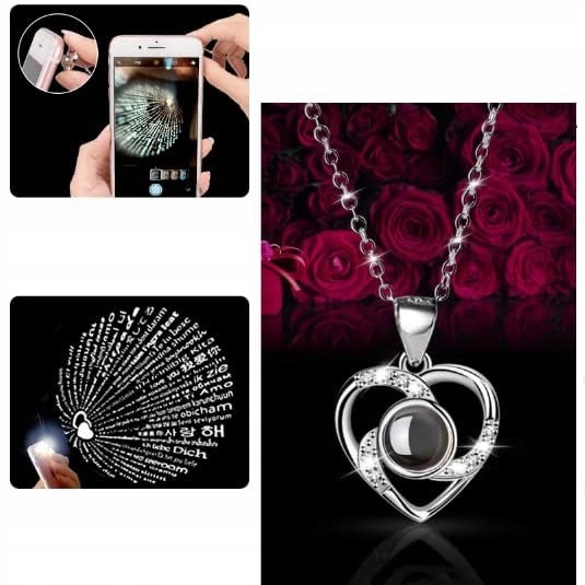 ✅ Уникальное ожерелье: Ожерелье было сделано из специального стекла, через которое показывает слово «любовь» на 100 языках, добавляя магию в подарок.