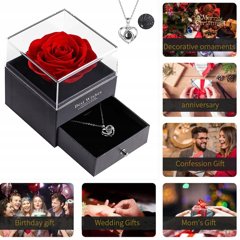 Почему стоит покупать этот продукт? Наша вечная роза в стекле с ожерельем - это символ любви и красоты, который впечатляет годами, не только на мгновение. Идеально подходит для тех, кто хочет сделать незабываемый подарок любимому человеку.