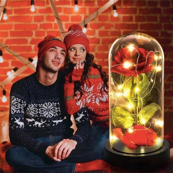 Вічна троянда в СКЛЯНОМУ куполі LED ГРАВІЮВАННЯ червоний ДЕНЬ СВЯТОГО ВАЛЕНТИНА ЖІНОЧИЙ ДЕНЬ